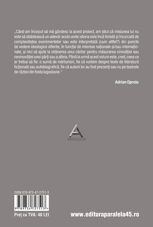 „Când am început să mă gândesc la acest proiect, am știut că misiunea lui nu este să stabilească un adevăr acolo unde istoria este încă timidă și încurcată de complexitatea evenimentelor sau este interpretată (cum altfel?) din puncte de vedere ideologice diferite, în funcție de interese naționale și/sau internaționale, și nici să ajute la obținerea unui cântar pentru măsurarea vinovăției sau nevinovăției unei părți sau a alteia. Până la urmă acest volum este, cred, ceea ce ar trebui să fie: o sumă de mărturisiri, fie că vorbim despre texte de literatură ficțională sau autobiografică, fie că autorii lor au fost prezenți sau nu pe teatrele de război din fosta Iugoslavie.“