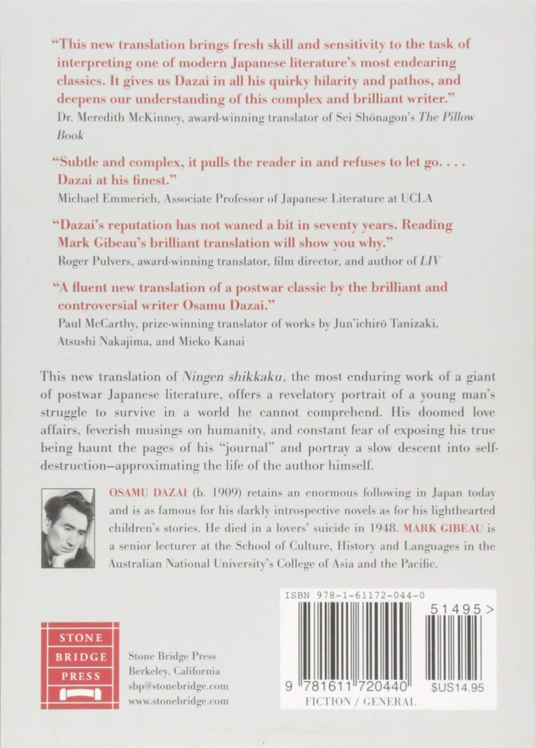 Osamu Dazai is one of the most famous—and infamous—writers of 20th-century Japan. A Shameful Life (Ningen Shikkaku) is his final published work and has become a bestselling classic for its depiction of the tortured struggle of a young man to survive in a world that he cannot comprehend. Paralleling the life and death of Dazai himself, the delicate weaving of fact and fiction remorselessly documents via journals the life of Yozo, a university student who spends his time in increasing isolation and debauchery. His doomed love affairs, suicide attempts, and constant fear of revealing his true self haunt the pages of the book and reveal a slow descent into madness. This dark tale nevertheless conveys something authentic about the human heart and its inability to find its true bearing.