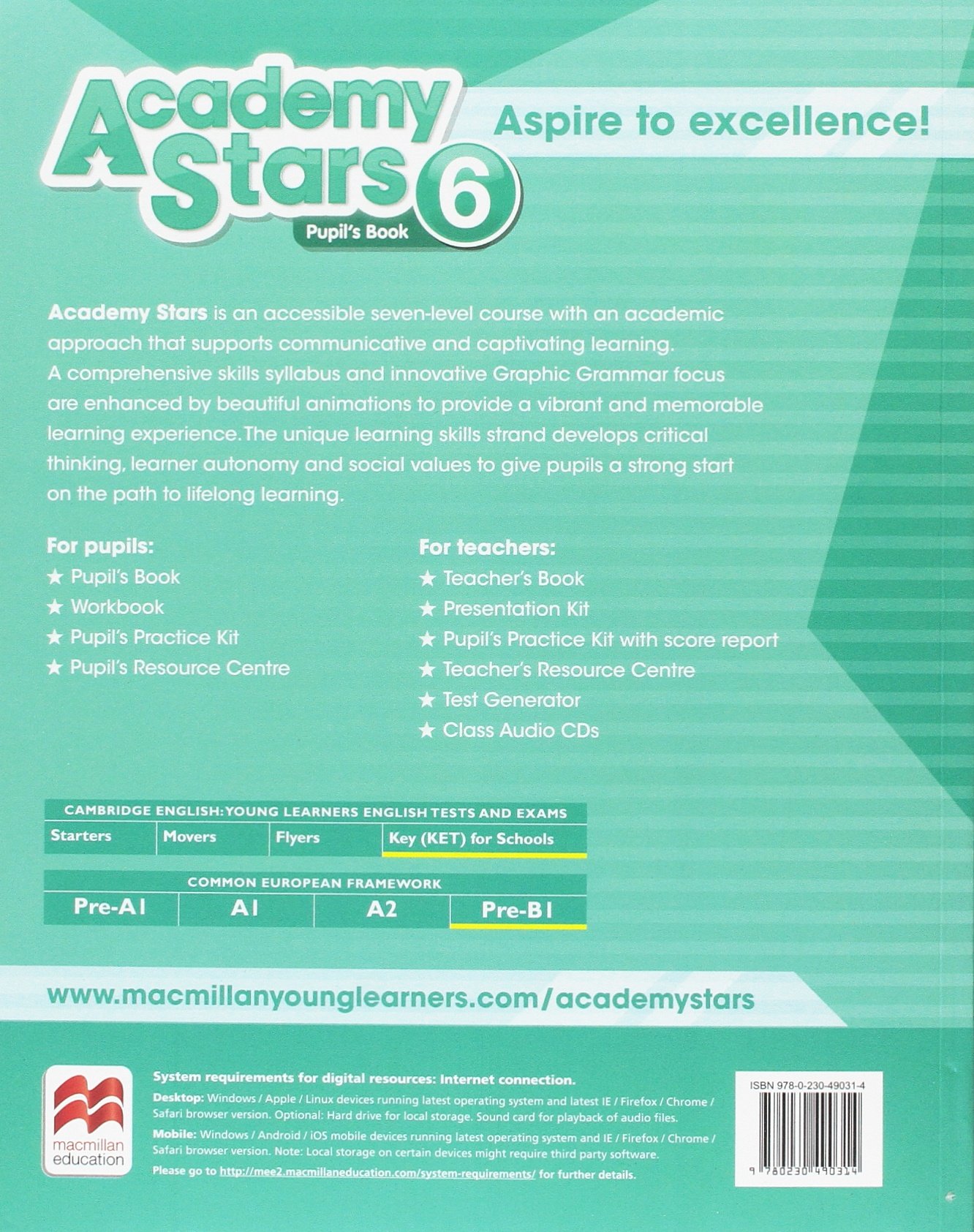 The Academy Stars Pupil's Book Pack provides multiple components that work together in and out of the classroom. The pack contains the print Pupil's Book plus an access code for the digital Pupil's Practice Kit and online Pupil's Resource Centre.