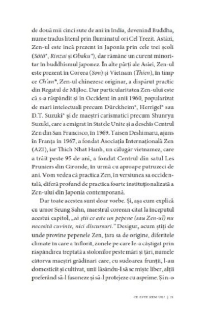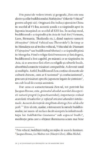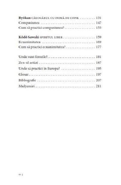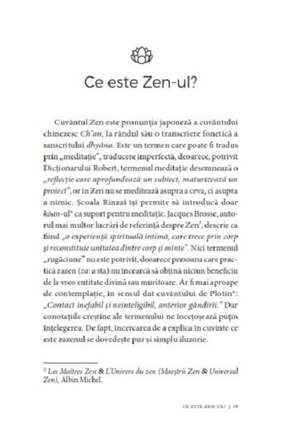 Zen-ul nu este o doctrină care prezintă relaxarea ca pe o artă, ci dimpotrivă este o practică riguroasă și pretențioasă, prin care cineva îşi însuşeşte valori umane ce astăzi par demodate, cum ar fi răbdarea, perseverența, bunăvoința, sobrietatea, ecuanimitatea...