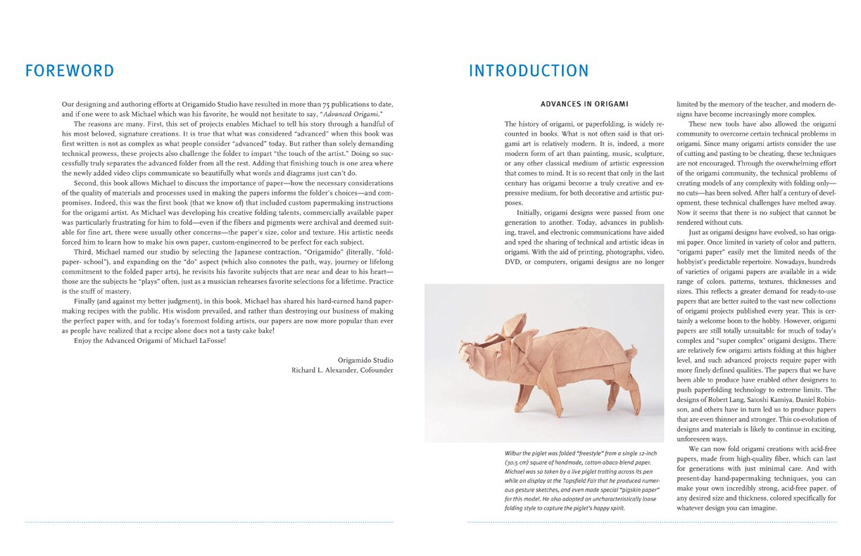 Take your paper folding to an advanced level with this user-friendly origami book. From shimmering hummingbirds to magnificent bats, from a stunning panther mask to graceful sea turtles, Michael G. Lafosse's complex and beautiful origami projects are well known around the world. Focusing on models from nature, Advanced Origami provides unparalleled instruction on how to create master-class level 3D origami paper folding projects. The origami designs are challenging they require some folding experience but the results are more origami art than craft. Paper folders will create projects that can be displayed or given as gifts. Sophisticated origami or paper crafts fans will appreciate the unique origami designs along with complete detailed instructions and easy-to-follow colour photos and diagrams. Advanced Origami also features information on paper selection and preparation, advance techniques such as wet folding, and making your own paper.This origami book contains: 136 page, full-color book 15 original and challenging projects Step-by-step instructions Colorful diagrams and photographs Advanced techniques and tipsIn recent years origami has evolved beyond simple folding and creasing into a true art form akin to sculpture. For those seeking to learn origami at such a level, Advanced Origami provides all the essential information and techniques. Soon you will be able to design and fold your own origami sculptures! Origami projects include: North American Cardinal Koi Fish Origamido Butterfly Pond Frog And many more About this new edition:This updated edition contains a new introduction and DVD video lessons for 15 original projects.
