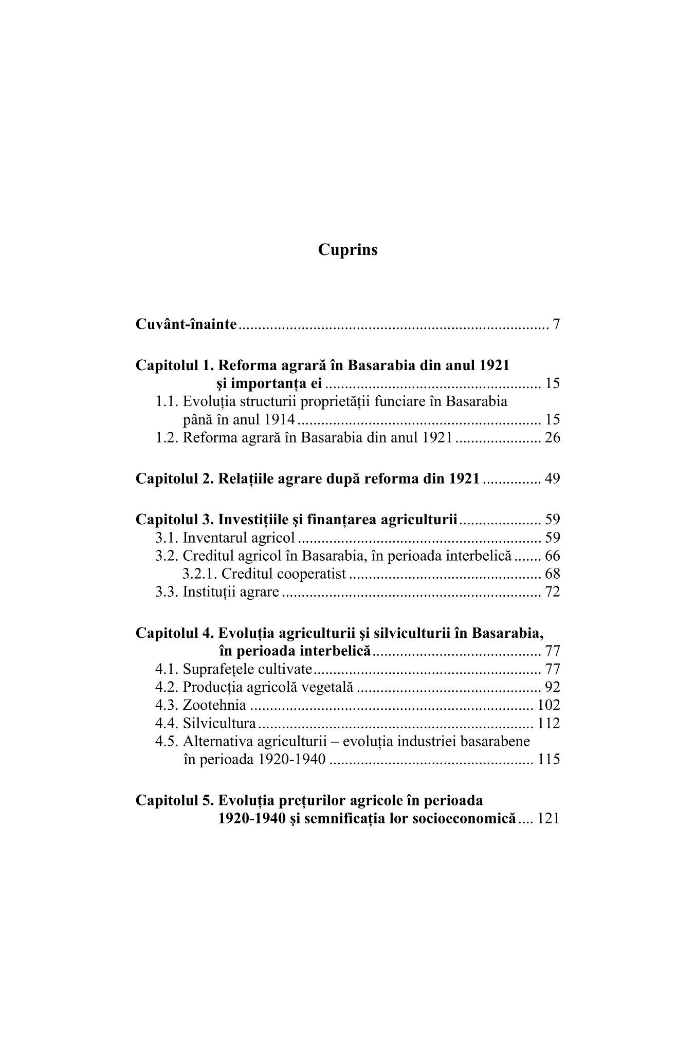 Obiectul lucrării de față îl constituie cercetarea evoluției ramurilor agriculturii basarabene după războiul mondial în conexiune cu întreaga economie a statului român. În perioada sovietică, viața economică a Basarabiei din perioada anterioară anului 1945 a fost studiată fie izolat de ansamblul problemelor economice ale României, fie în raport cu evoluția economiei mondiale. Din desconsiderarea acestor raporturi a rezultat uneori și ignorarea unor factori economici de o importanță primordială pentru evoluția agriculturii basarabene.