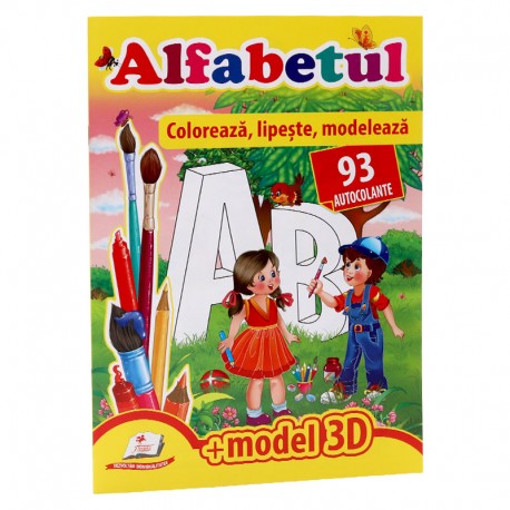 Alfabetul - Coloreaza, lipeste, modeleaza + 93 autocolante +3D model