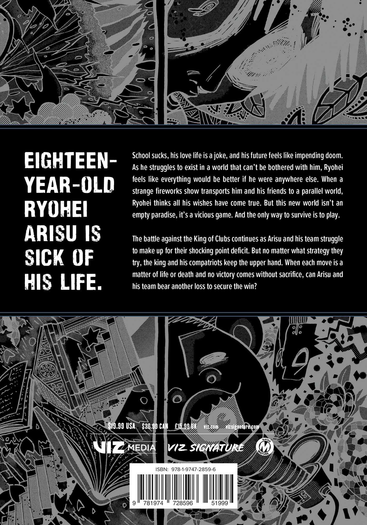 Eighteen-year-old Ryohei Arisu is sick of his life. School sucks, his love life is a joke, and his future weighs on him like impending doom. As he struggles to exist in a world that can’t be bothered with him, Ryohei feels like everything would be better if he were anywhere else. When a strange fireworks show transports him and his friends to a parallel world, Ryohei thinks all his wishes have come true. But this new world isn’t an empty paradise, it’s a vicious game. And the only way to survive is to play.