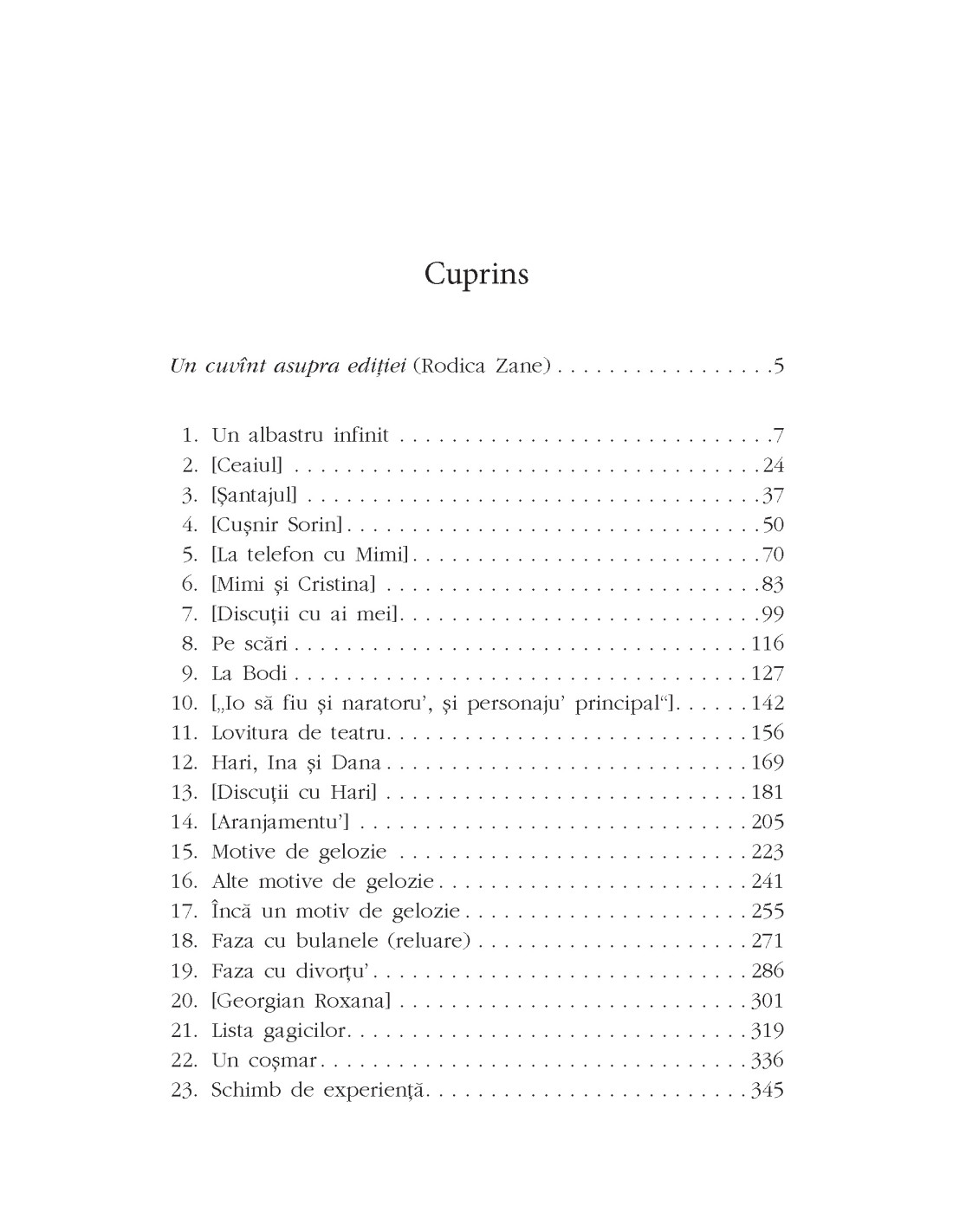 „Pe cititorul acestui roman l-aș ruga, fără infatuată solemnitate, să se apropie cu discreție de lumea lui Ovidiu Verdeș. Va descoperi un fragil însingurat, claustrat în interiorul propriei sale minți, care se deschide, în acest moment unic, într-o impresionantă transparență. E un tip de scriere ce nu a fost programat să fie publicat – un denunț testamentar, creat într-o nelimitată generozitate, care pare că spune, vorba cântecului (știu, e Beatles, nu Rolling Stones, dar Ovidiu cu siguranță m-ar ierta): In my life, I’ve loved them all.” (Octavian Plăiașu-Cozan)