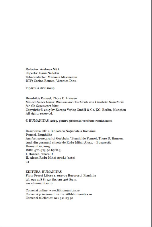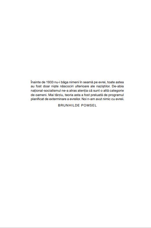 Brunhilde Pomsel a fost printre puținii care au reușit să ajungă în imediata apropiere a unuia dintre cei mai mari criminali din istorie. În Ministerul Propagandei, condus de Joseph Goebbels, a lucrat ca stenografă, dactilografă și secretară. Până la capitularea Berlinului, în mai 1945, a fost avansată și a ajuns în anticamera ministrului și-n mijlocul elitei conducătoare a național-socialismului. Chiar și în ultimele zile de război, când trupele sovietice se aflau deja pe străzile Berlinului, ea dactilografia acte oficiale și, în loc să găsească un moment prielnic ca să fugă, a fost cea care a cusut steagul capitulării. Mai bine de șapte decenii n-a vorbit cu nimeni despre toate acestea.