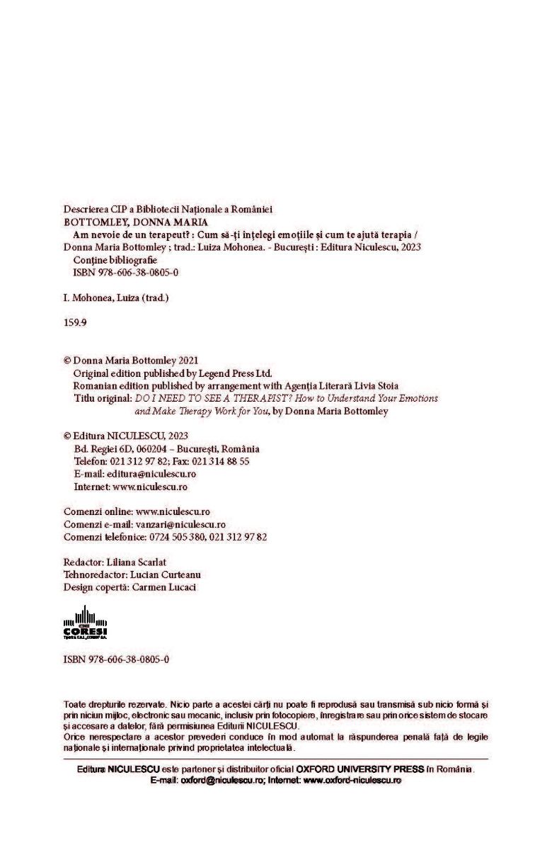 În acest ghid practic, care are la bază unele dintre cele mai recente studii în domeniu, psihoterapeuta Donna Maria Bottomley analizează aceste anxietăţi. Aceasta susţine că terapia ar trebui să fie la fel de uşor de acceptat precum a merge la medicul de familie sau a-ți duce mașina la reparat și în niciun caz ca fiind ultima noastră speranță.