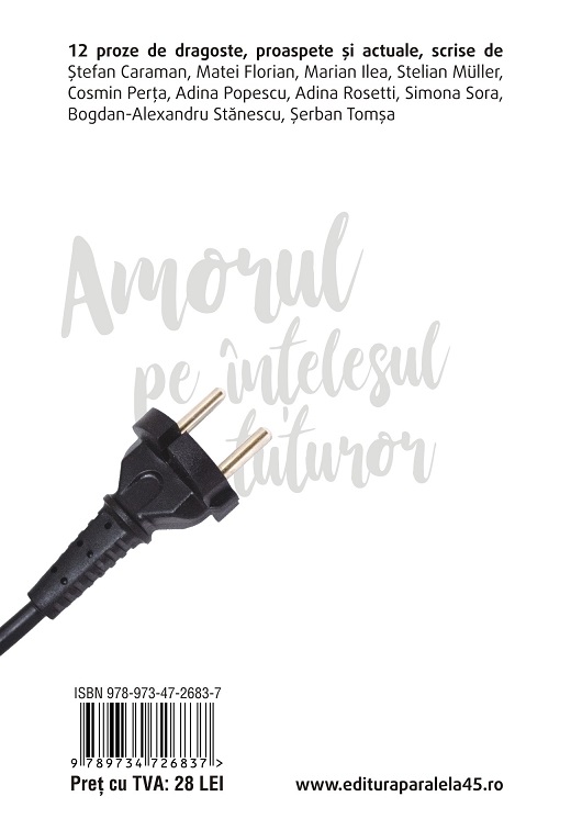 12 proze de dragoste, proaspete și actuale, scrise de Ștefan Caraman, Matei Florian, Marian Ilea, Stelian Muller, Cosmin Perța, Adina Popescu, Adina Rosetti, Simona Sora, Bogdan-Alexandru Stănescu, Șerban Tomșa
