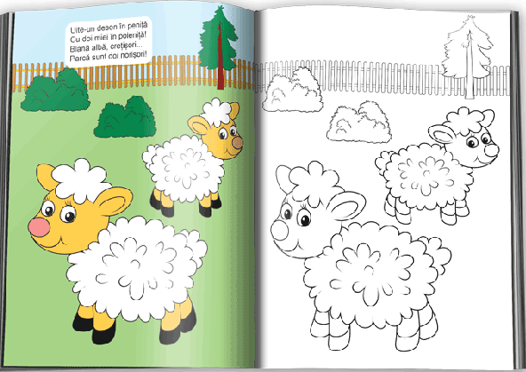Pe lângă paginile de colorat, cartea conține și pagini cu activități care dezvoltă gândirea logică, perspicacitatea și atenția..