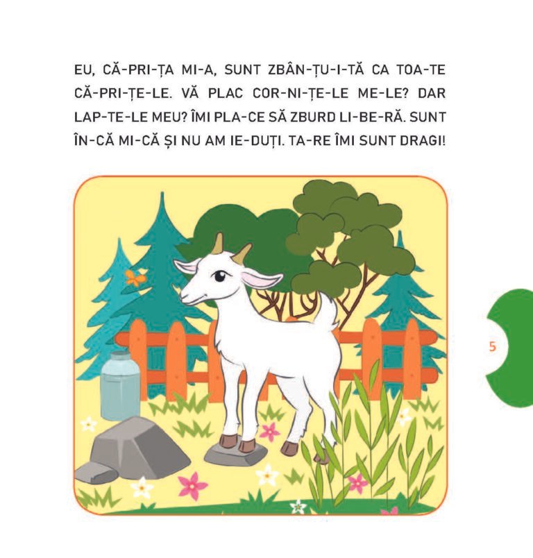Cartea dată este un instrument ideal pentru copiii care fac primii pași în universul literelor. Cu ajutorul ei vor învăța să recunoască silabele și să le lege în cuvinte cu sens, aflând lucruri interesante despre mediul în care trăiesc animalele și obiceiurile lor. De asemenea, vor învăța să aibă încredere în forțele proprii, transformând „e greu să citesc” în „pot să citesc singur!”.