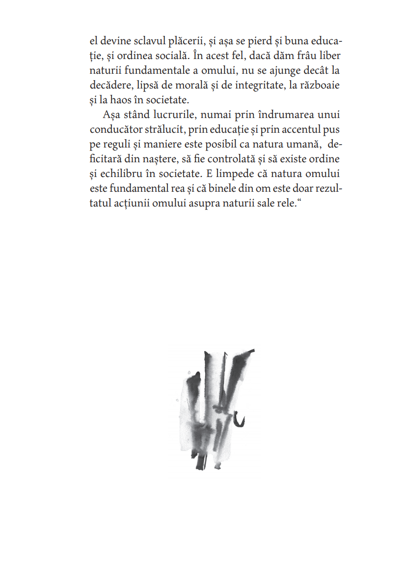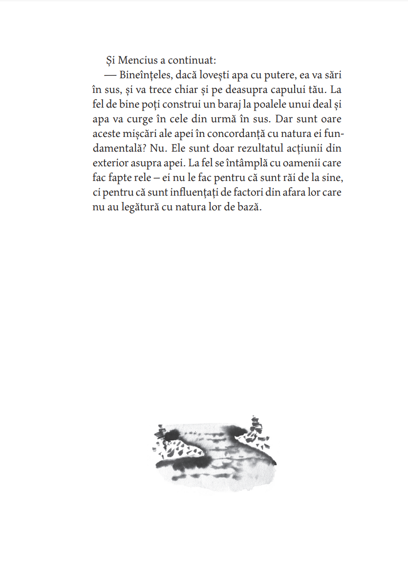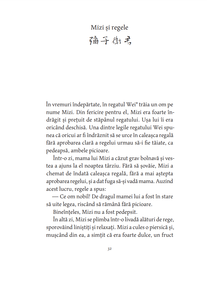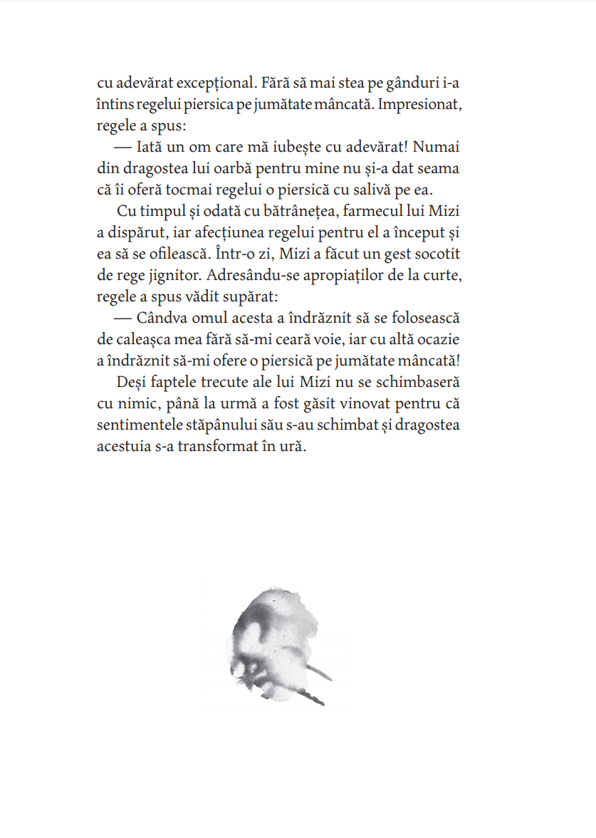 ― Arc? Ce arc? a răspuns bătrânul maestru râzând. Atâta timp cât ai nevoie de arc și de săgeată încă tragi cu arcul. Când tragi cu arcul fără arc, nu ai nevoie nici de arc, nici de săgeată. Tocmai atunci, în înaltul cerului se rotea în zbor lin un uliu. Era atât de departe, încât părea a fi doar o sămânţă de susan. Gan Ying l-a privit un timp, apoi l-a ochit, făcând gestul de a pune o săgeată în arc. Numai că nu avea nici arc și nici săgeată. Pe urmă a întins arcul nevăzut la maximum, ca o lună plină, și, deodată, a slobozit săgeata, și ea nevăzută. Fulgerat, uliul nici măcar nu a mai apucat să zvâcnească din aripi și a căzut ca o piatră din cer. Ji Chang a rămas trăsnit. Pentru prima oară a văzut cu ochii lui măiestria desăvârșită a trasului cu arcul. — Arcașul fără arc