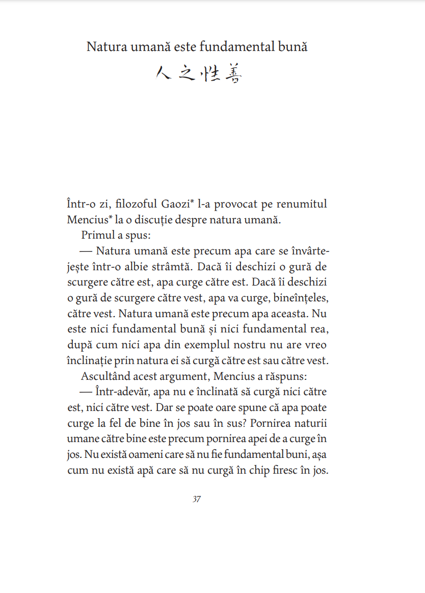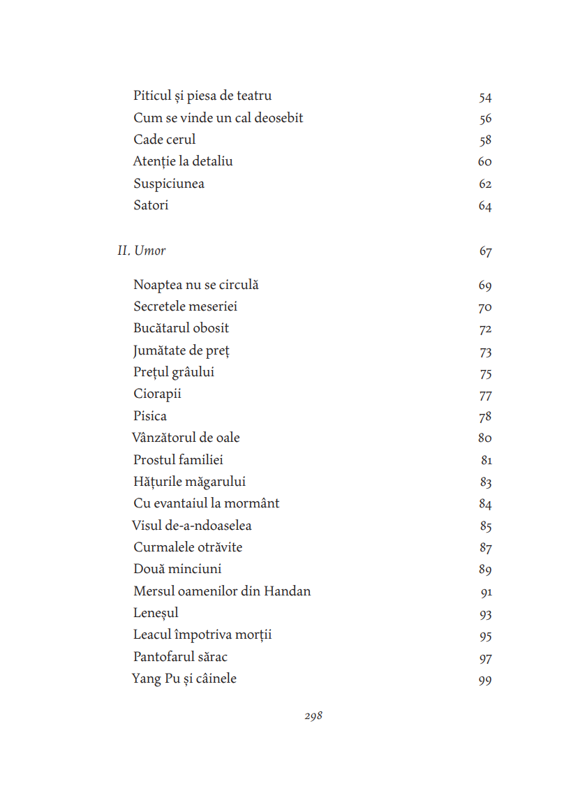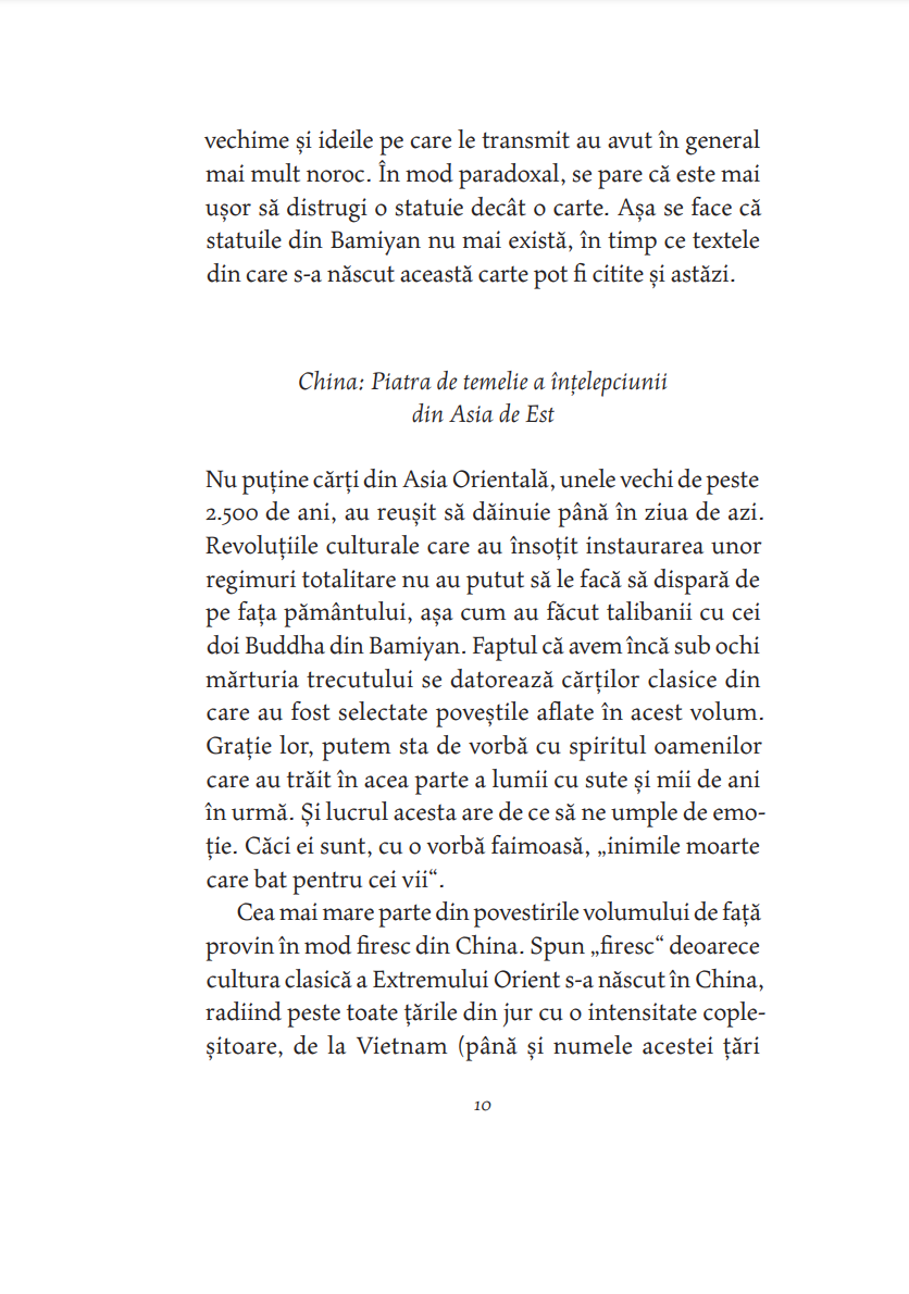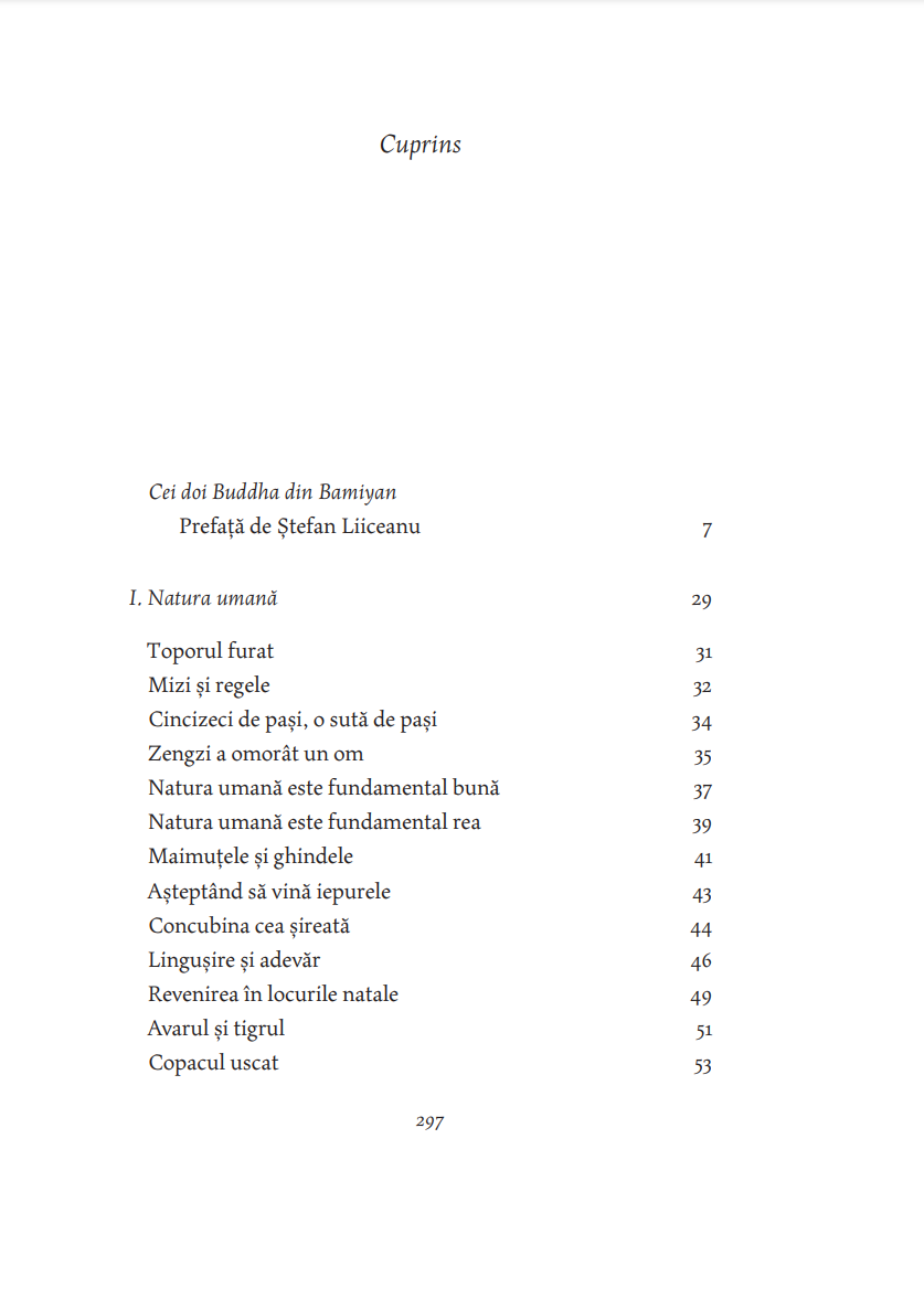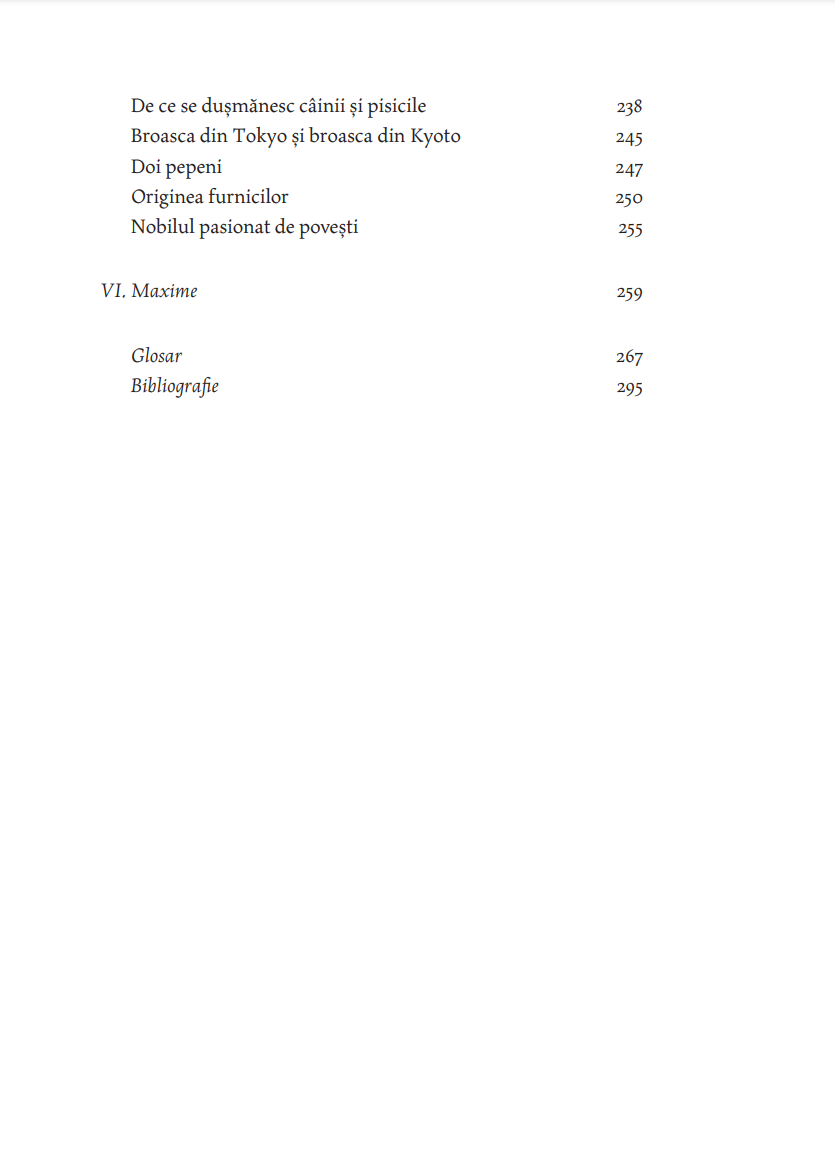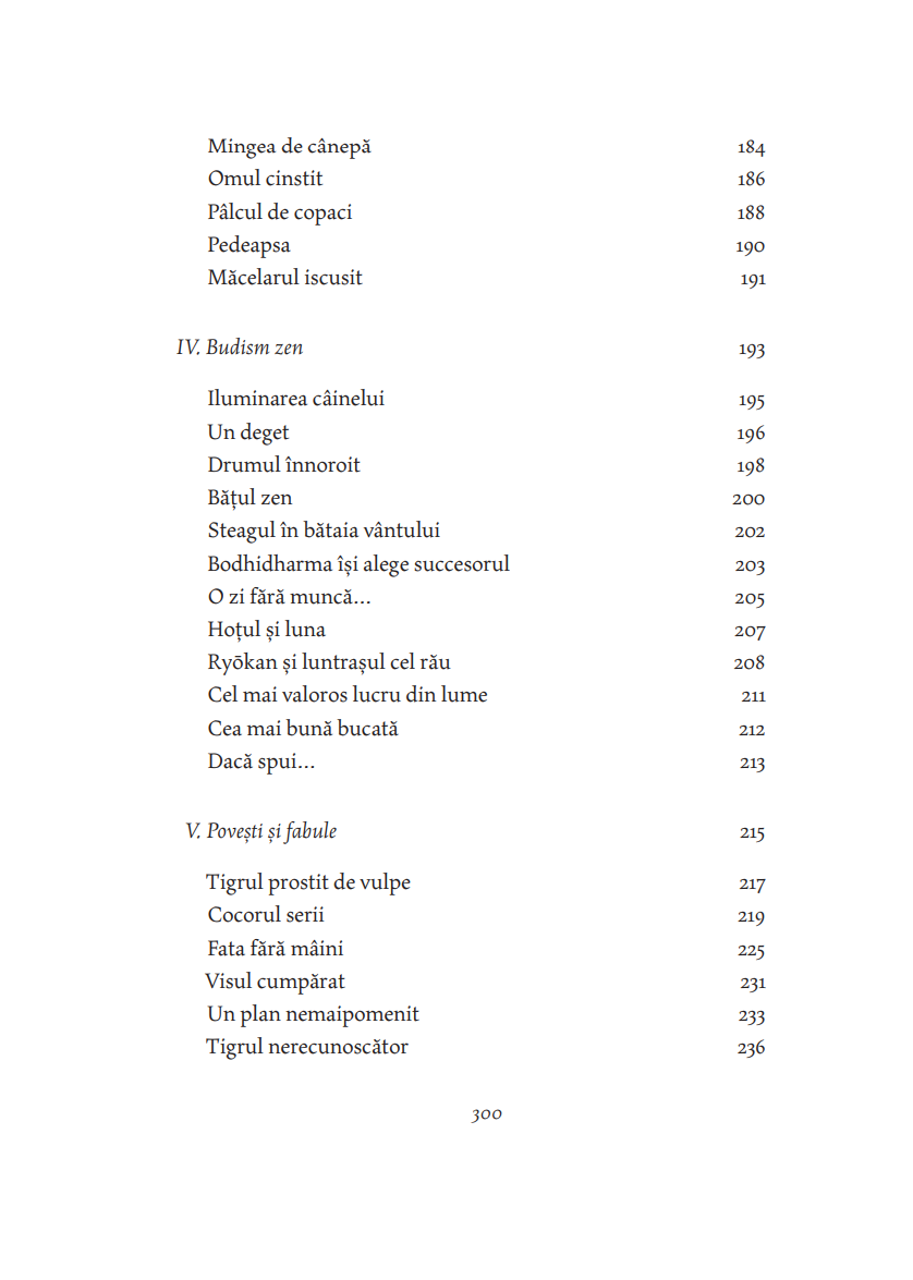 „Plăcerea lecturii acestui volum va veni din confruntarea cititorului cu simplitatea în forma ei cea mai rafinată. Cum se poate ca atât de puţine cuvinte să spună atât de mult? se va întreba cititorul. Nimic nu e mai greu decât să obţii epura lumii reducând vastitatea ei la dimensiunile unui bob de înţelepciune. Sfatul de viaţă oferit fără pedanterie, calmul și siguranţa cu care maestrul își conduce interlocutorul până la punctul iluminării, radiografierea subtilă a firii umane, tenacitatea cu care voinţa e cultivată până acolo unde spiritul ajunge să înfrângă legea naturii, estomparea raportului realitate–vis, care generează naraţiuni construite pe efectul mise en abîme, umorul rafinat, fabula sofisticată, povești ca Arcașul fără arc și Cocorul serii, pe care cine le citește nu le mai uită niciodată – toate aceste pagini minunate m-au făcut fericit la gândul că, traducându-le, pot să le pun și la îndemâna altora.“ — ŞTEFAN LIICEANU