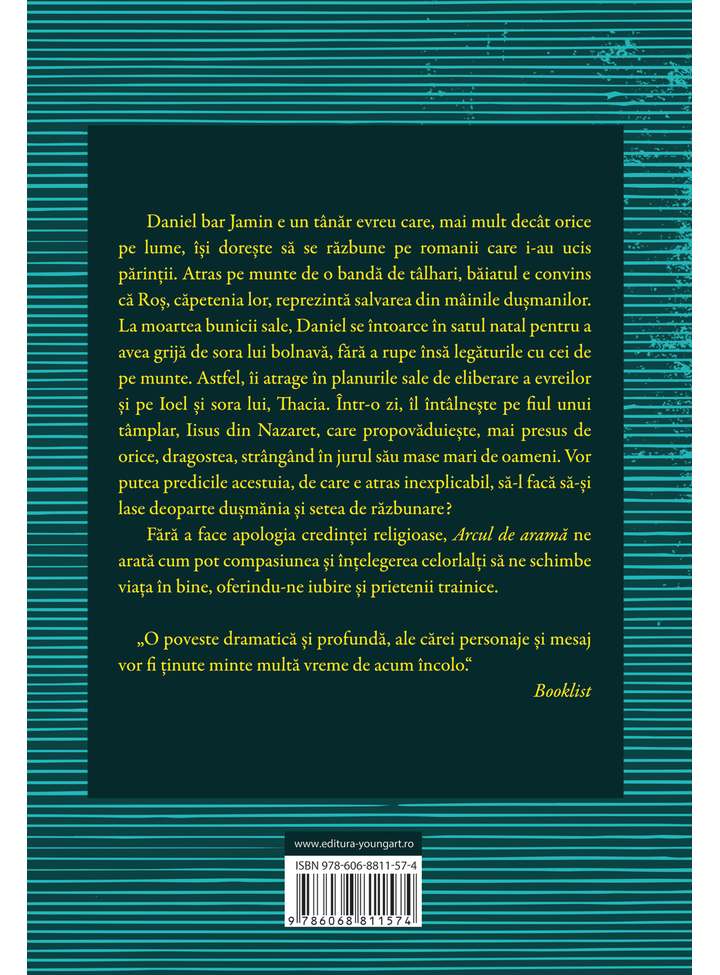 Fără a face apologia credinţei religioase, „Arcul de arama” ne arată cum pot compasiunea și înţelegerea celorlalţi să ne schimbe viaţa în bine, oferindu-ne iubire și prietenii trainice.