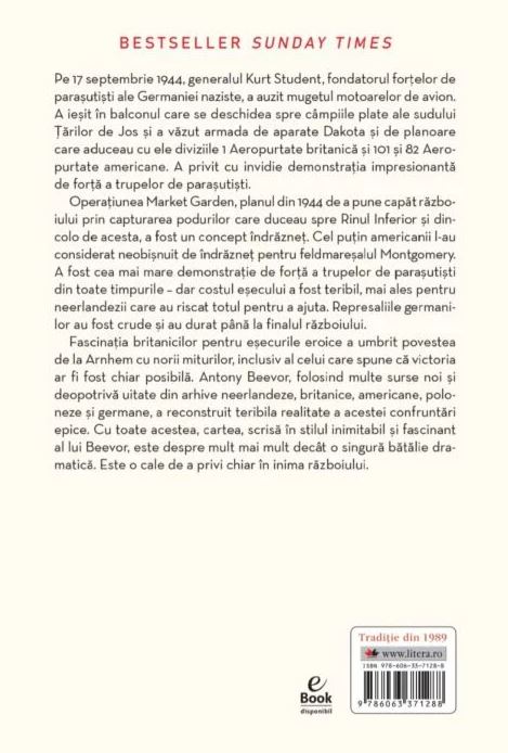 Fascinația britanicilor pentru eșecurile eroice a umbrit povestea de la Arnhem cu norii miturilor, inclusiv al celui care spune că victoria ar fi fost chiar posibilă. Antony Beevor, folosind multe surse noi și deopotrivă uitate din arhive neerlandeze, britanice, americane, poloneze și germane, a reconstruit teribila realitate a acestei confruntări epice. Cu toate acestea, cartea, scrisă în stilul inimitabil și fascinant al lui Beevor, este despre mult mai mult decât o singură bătălie dramatică. Este o cale de a privi chiar în inima războiului.