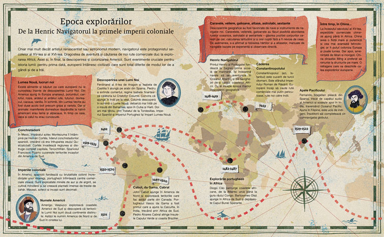 Un mare atlas ilustrat, care trece în revistă cele mai importante evenimente din istoria lumii, de la nașterea Universului până astăzi, folosind instrumentul vizual al liniilor temporale și pagini mari, care se deschid cu ferestre. O călătorie în timp, în care prind viață marile cuceriri și invenții ale umanității, ascensiunea și căderea unor imperii imense, cele mai vestite bătălii și minunile artei, științei și literaturii. De la dinozauri la Roma antică, de la castelele medievale la cele două războaie mondiale, de la Big Bang la revoluția digitală.