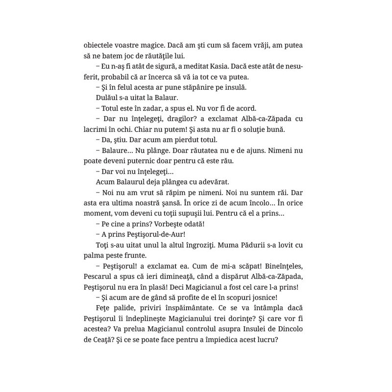 Ziua aceasta a început altfel. Scufiţa Roşie şi-a pierdut pe undeva scufiţa, iar Pescarul s-a întors de la pescuit fără Peştişorul-de-Aur. Dar ăsta nu a fost cel mai rău lucru – pe Insula Basmelor, atât de liniştită până atunci, au apărut nişte răpitori. Totul este pe dos, toată lumea caută şi nimeni nu găseşte, piticii îşi salvează frăţiorul mai mic care era să fie mâncat, iar pervazurile au gust de scorţişoară...