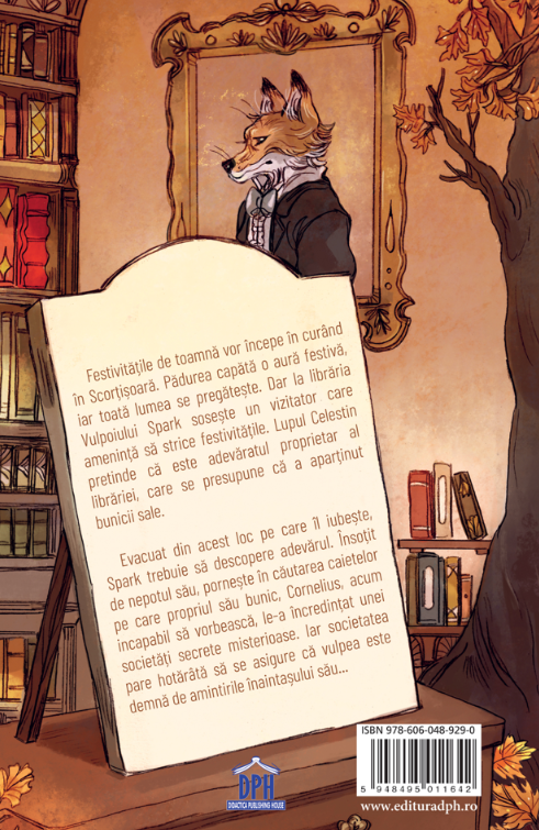 În pădurea Scorțișoară, toamna aduce pregătiri pentru festivități, dar bucuria este umbrită de sosirea Lupului Celestin, care pretinde că librăria Vulpoiului Spark i-ar aparține de drept. Alungat din locul pe care îl iubește, Vulpoiul Spark pornește alături de nepotul său într-o aventură plină de mister, pe urmele caietelor ascunse de bunicul Cornelius și a unei societăți secrete. Călătoria lor devine o lecție despre curaj, loialitate și puterea amintirilor care unesc generațiile.