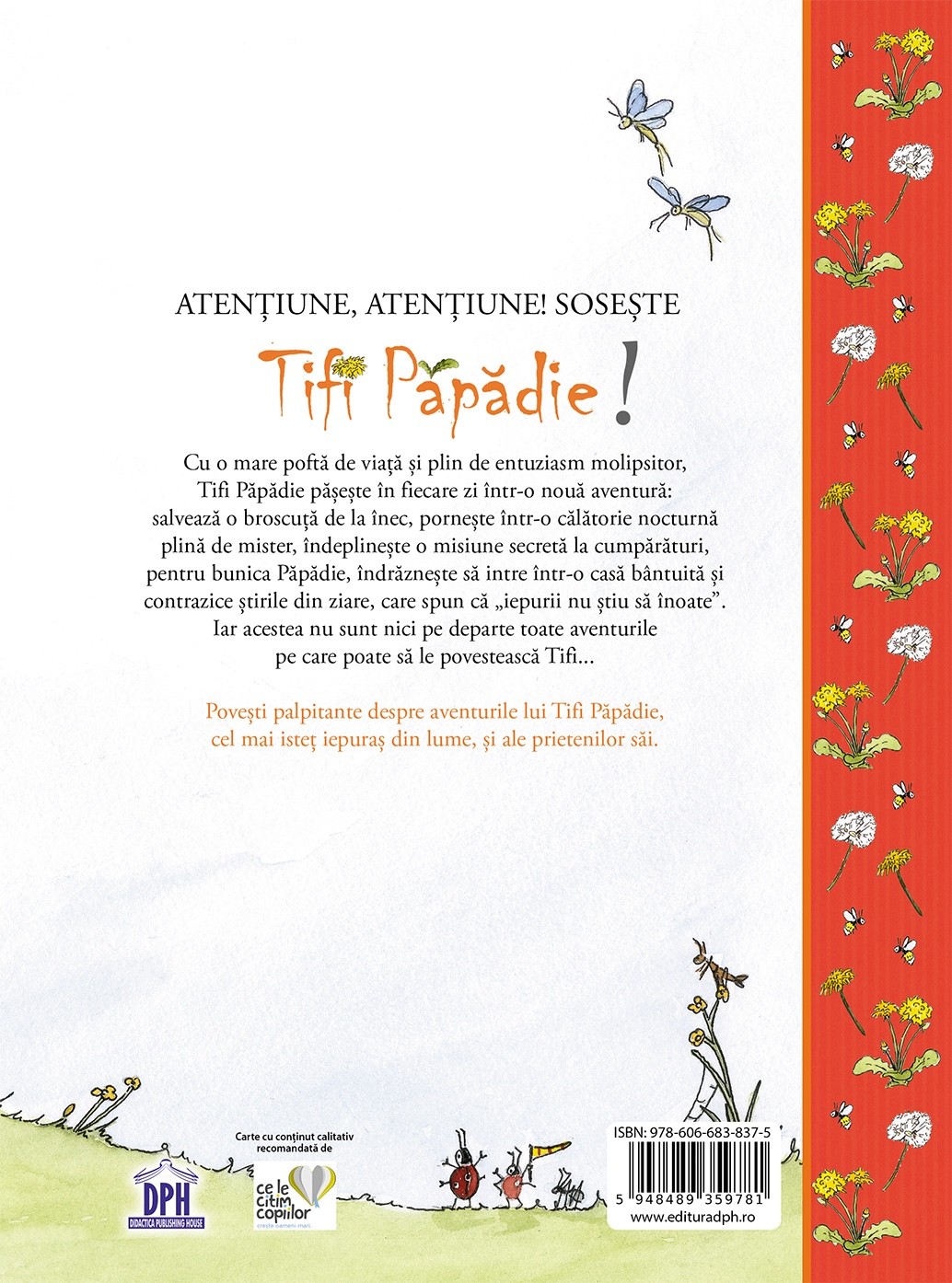 Povești palpitante despre aventurile lui Tifi Păpădie, cel mai isteț iepuraș din lume, și ale prietenilor săi.