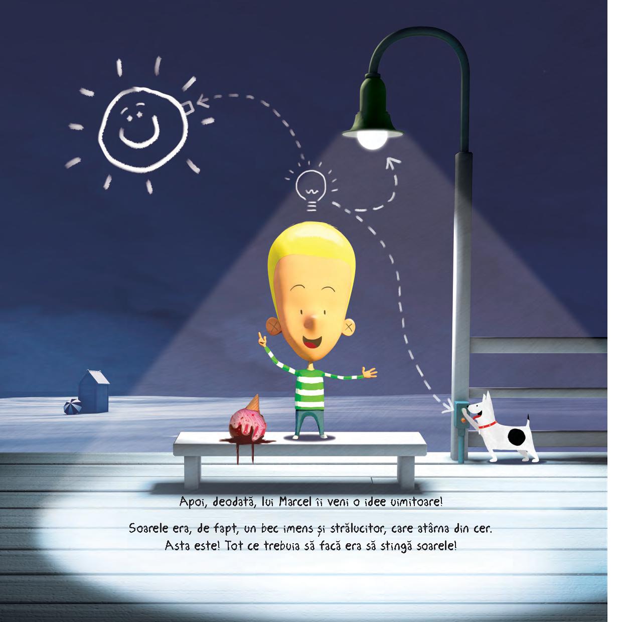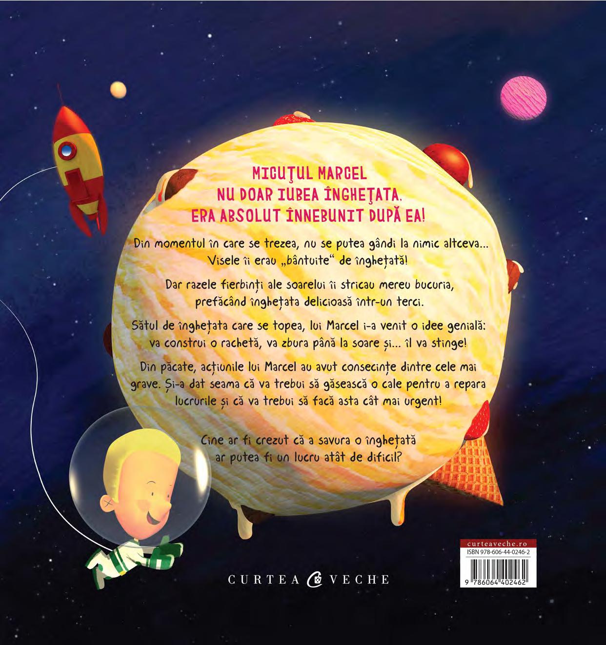 Sătul de îngheţata care se topea, lui Marcel i-a venit o idee genială: va construi o rachetă, va zbura până la soare şi... îl va stinge!
