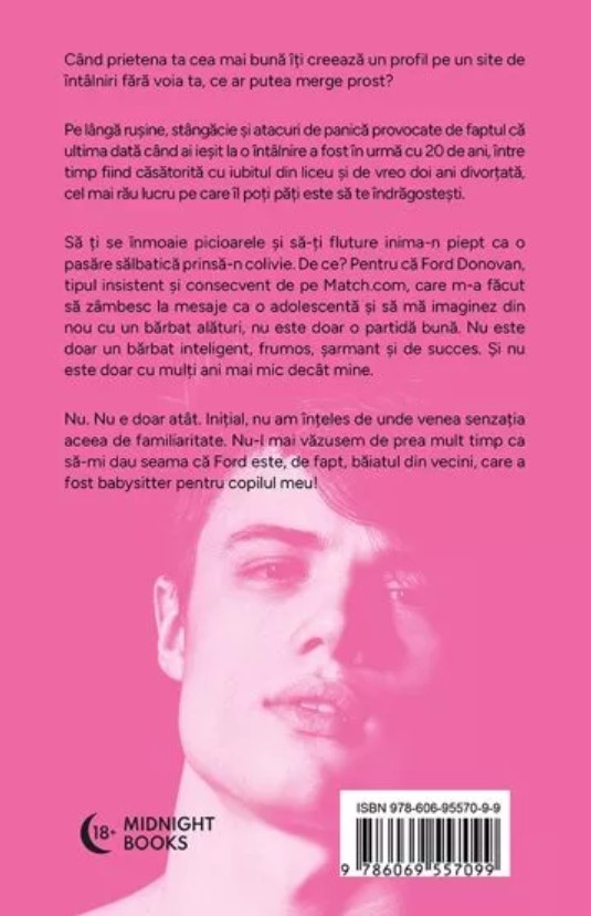Să ți se topească picioarele și să-ți fluture inima-n piept ca o pasăre sălbatică prinsă-n colivie. De ce? Pentru că Ford Donovan, tipul insistent și consecvent de pe Match.com, care m-a făcut să zâmbesc la mesaje ca o adolescentă și să mă imaginez din nou cu un bărbat alături, nu e doar o partidă bună. Nu este doar un bărbat inteligent, frumos, șarmant și de succes. Și nu este doar cu mulți ani mai mic decât mine.