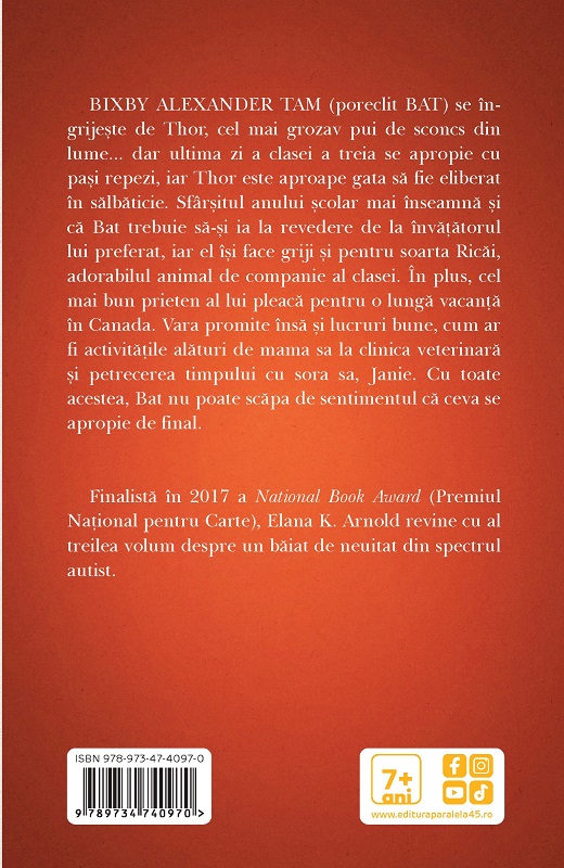 Finalistă în 2017 a National Book Award (Premiul Național pentru Carte), Elana K. Arnold revine cu al treilea volum despre un băiat de neuitat din spectrul autist.