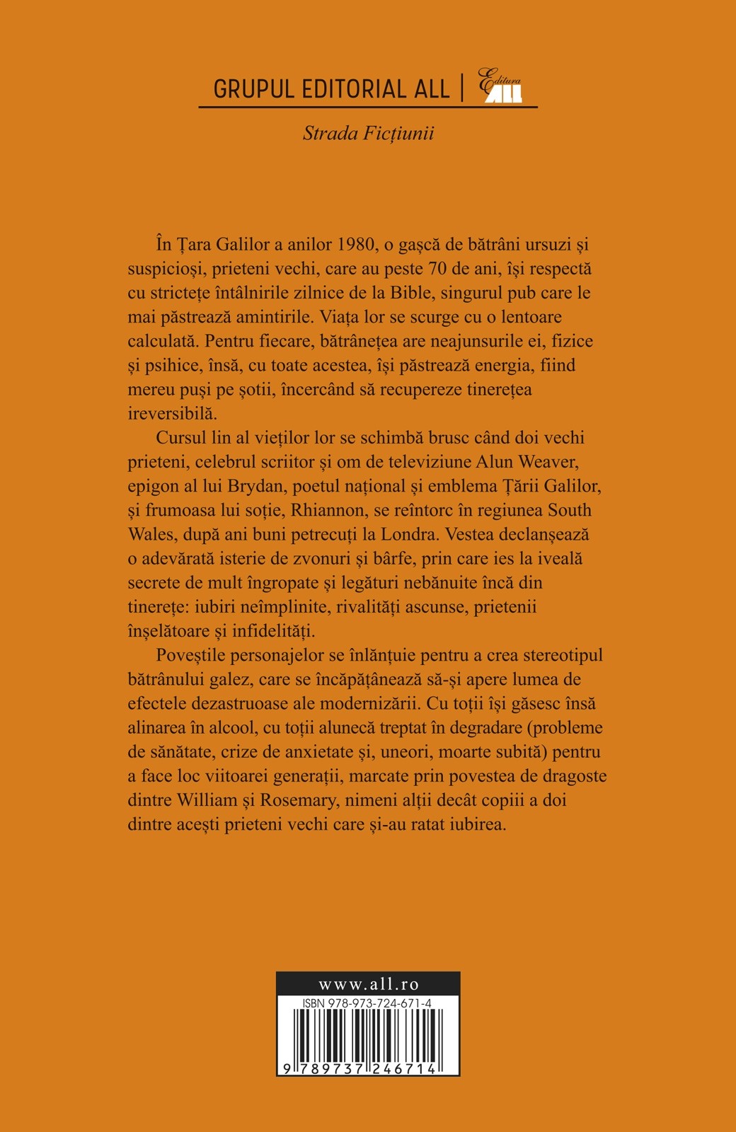 Poveștile personajelor se înlănțuie pentru a crea stereotipul bătrânului galez, care se încăpățânează să-și apere lumea de efectele dezastruoase ale modernizării. Cu toții își găsesc însă alinarea în alcool, cu toții alunecă treptat în degradare pentru a face loc viitoarei generații, marcate de povestea de dragoste dintre William și Rosemary, nimeni alții decât copiii a doi dintre acești prieteni vechi care și-au ratat iubirea.