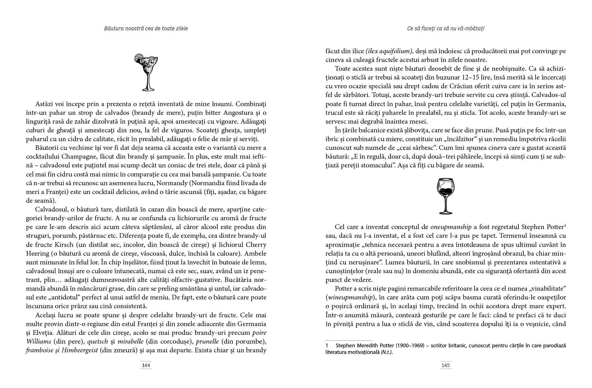 Băutura noastră cea de toate zilele – iată în sfârșit cel mai îndrăgit și cel mai bine vândut volum al lui Kingsley Amis care are ca temă mult gustatul subiect al băuturii. Alături de o serie de rețete îndelung verificate (inclusiv un cocktail numit Lucky Jim), cartea cuprinde reflecțiile lui Amis despre mahmureală, dieta băutorului de cursă lungă, ghidul zgârciomanului afurisit și (probabil ca o temă de speculație) îți dezvăluie cum să faci să nu te îmbeți – toate acestea condimentate cu chestionare distractive despre fabricarea și consumul de alcool în întreaga lume. Amestecând cunoștințe practice cu opinii amuzante, cartea aceasta este un cocktail încântător de umor, ironie și informații distilate, servit de unul dintre marile spirite ale secolului trecut.