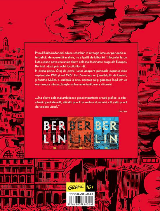 Primul Război Mondial aduce schimbări în întreaga lume, iar perioada interbelică, de aparentă acalmie, nu e lipsită de tulburări. Trilogia lui Jason Lutes spune povestea unuia dintre cele mai fascinante oraşe ale Europei, Berlinul, văzut prin ochii locuitorilor săi.