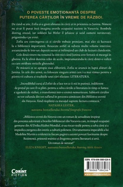 Zofia are convingerea că și cărțile trebuie protejate, mai ales că lucrează la o bibliotecă importantă. Reușește astfel să salveze multe volume interzise, ascunzându-le într-un depozit secret și înființând un club de lectură clandestin.