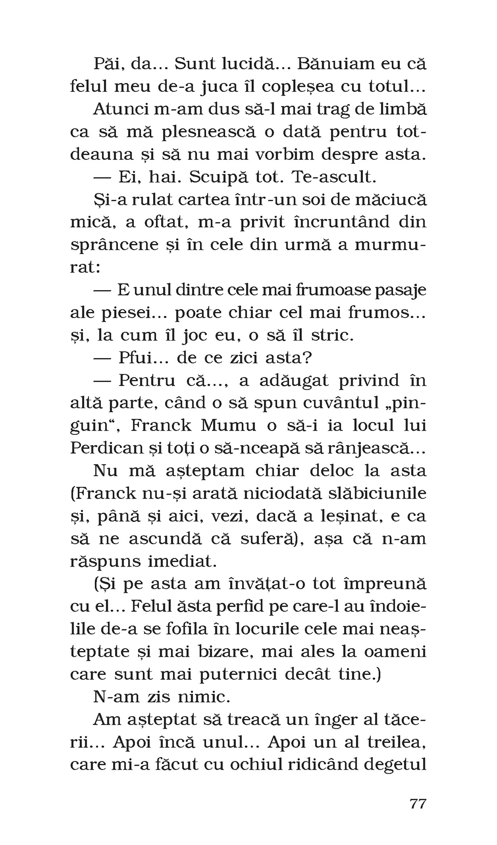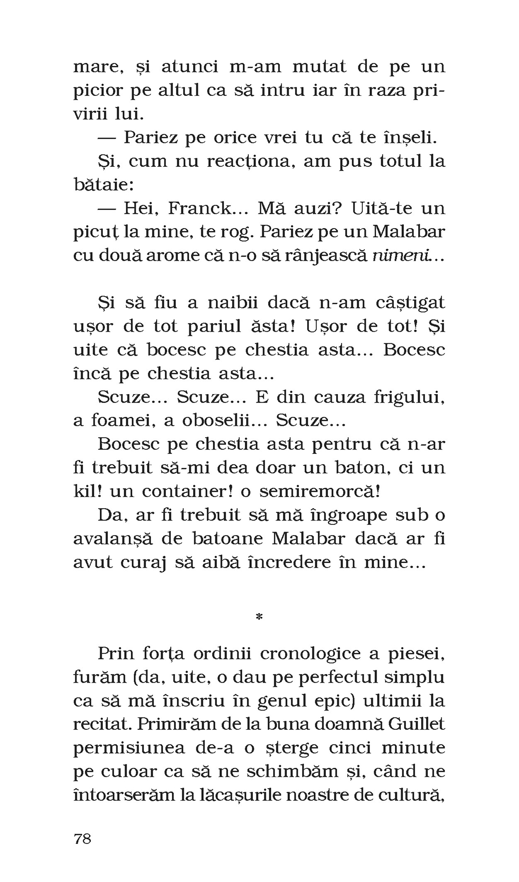 Billie şi Franck zac pe fundul unei prăpăstii, într-o văgăună din Munţii Cévennes, iar Franck şi-a pierdut cunoştinţa. Ca să-şi salveze cel mai bun prieten, alături de care a trecut prin lungul şir de peripeţii ce a fost viaţa lor de pînă atunci, Billie face singurul lucru care-i trece prin cap: îi ţine steluţei lui norocoase o pledoarie însufleţită, dezarmant de sinceră şi adesea ireverenţioasă în favoarea prieteniei lor. Îi povesteşte cum au reuşit să se scoată unul pe celălalt de pe fundul prăpastiei care fusese copilăria lor din „lumea a patra”, marcată, pe de o parte, de un tată intolerant şi cu idei extremiste şi o mamă abrutizată de băutură şi, pe de alta, de mizeria unei vieţi trăite lîngă groapa de gunoi, într-o familie abuzivă şi nepăsătoare. Îi descrie micile explozii de fericire şi frumuseţe aduse de muzică sau cărţi, dar şi rănile de nevindecat provocate de oameni, capriciile şi greşelile fiecăruia şi curajul de a-şi lua viaţa în propriile mîini, construind, cu tandreţe stîngace şi umor exuberant, uneori deocheat, un manual de supravieţuire prin iubire.