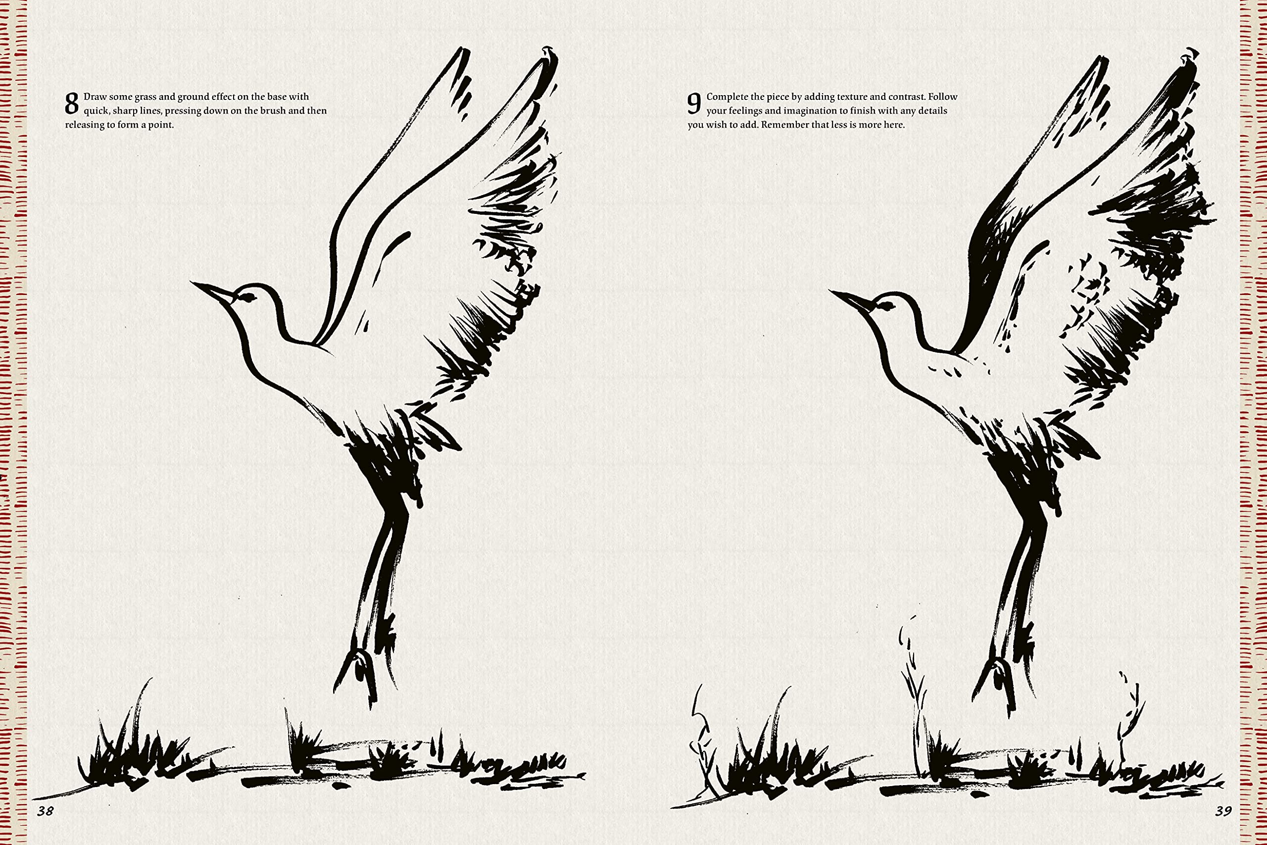 The step-by-step projects that follow take you through the process of creating your own ink-and-brush art, with large images that illustrate the techniques and detailed, easy-to-follow instructions for brushwork, adding color, and more. The layout design is airy and contemporary to match the art style.
