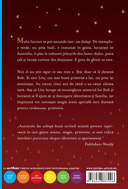Nici el nu știe sigur ce sau cine e. Știe doar că îl cheamă Bob. Și nici Livy, cea mai bună prietenă a lui, nu prea își amintește. Au trecut cinci ani de când s-au văzut ultima oară. Așa că Livy începe să investigheze misterul lui Bob și încearcă să îl ajute să-și descopere identitatea și familia, iar împreună vor cunoaște magia aceea specială care durează pentru totdeauna: prietenia.
