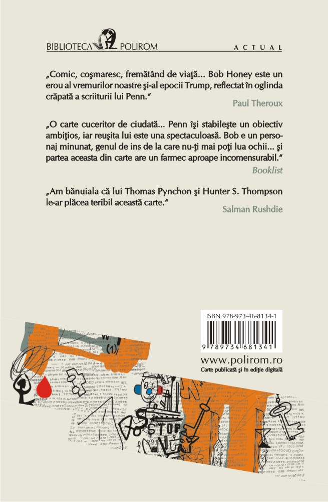 „Comic, coşmaresc, fremătînd de viaţă... Bob Honey este un erou al vremurilor noastre şi-al epocii Trump, reflectat în oglinda crăpată a scriiturii lui Penn.” (Paul Theroux)