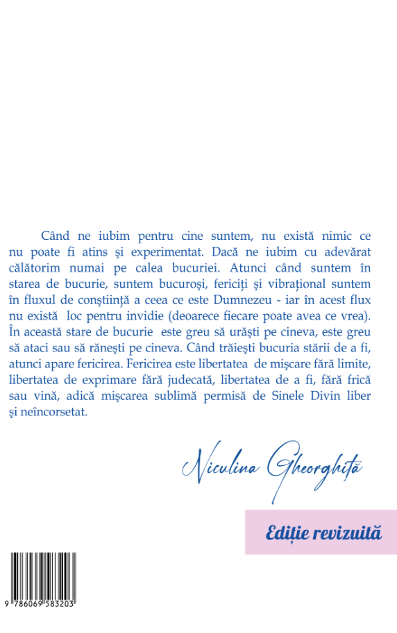 Dacă ne iubim cu adevărat călătorim numai pe calea bucuriei. Atunci când suntem în starea de bucurie, suntem bucuroși, fericiți și vibrațional suntem în fluxul de conștiință a ceea ce este Dumnezeu -iar în acest flux nu există loc pentru invidie (deoarece fiecare poate avea ce vrea).