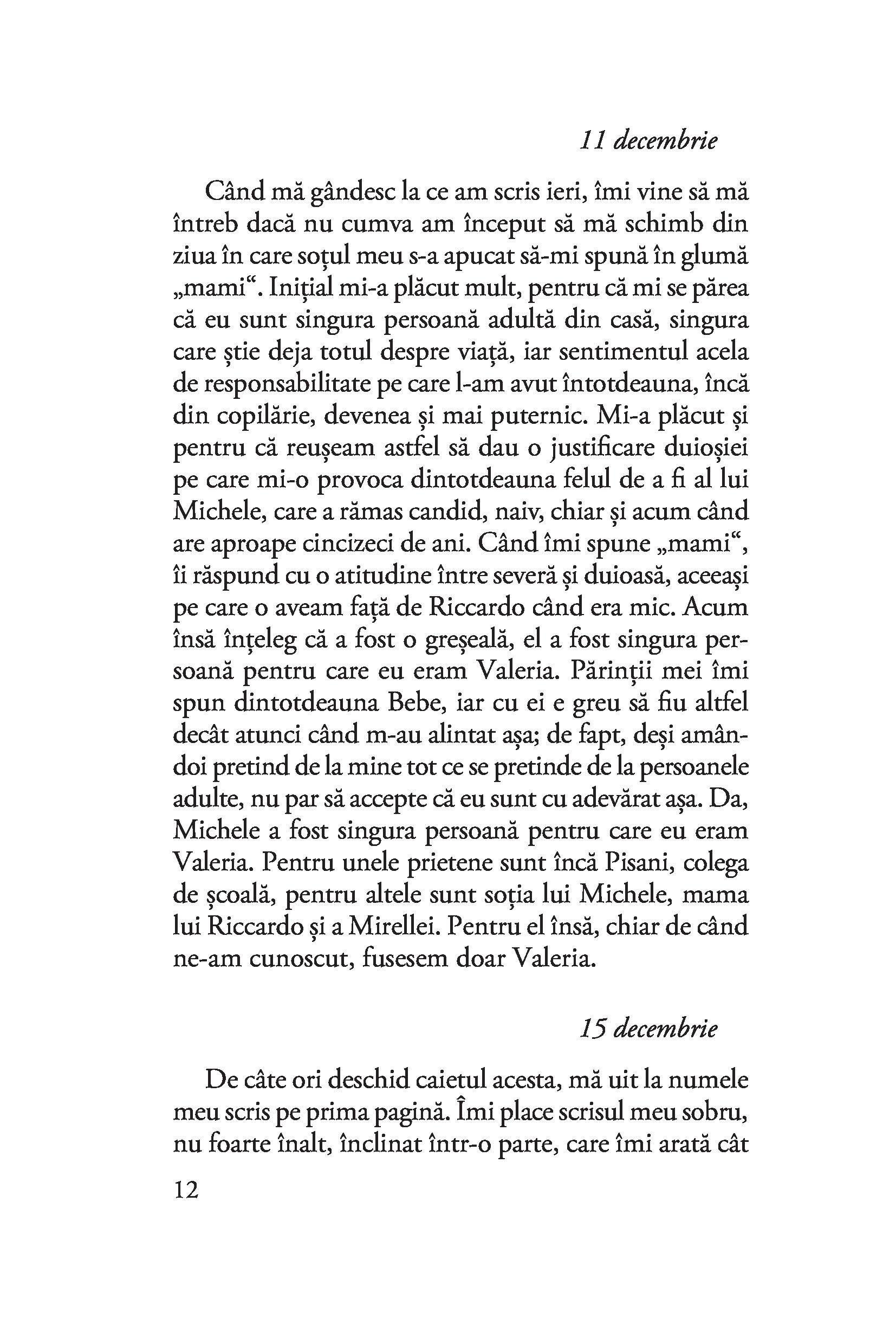Valeria Cossati, o soție devotată și mamă, își împlinește nevoia de intimitate și de asumare a identității grație unui caiet negru în care își dezvăluie secretele și frământările.