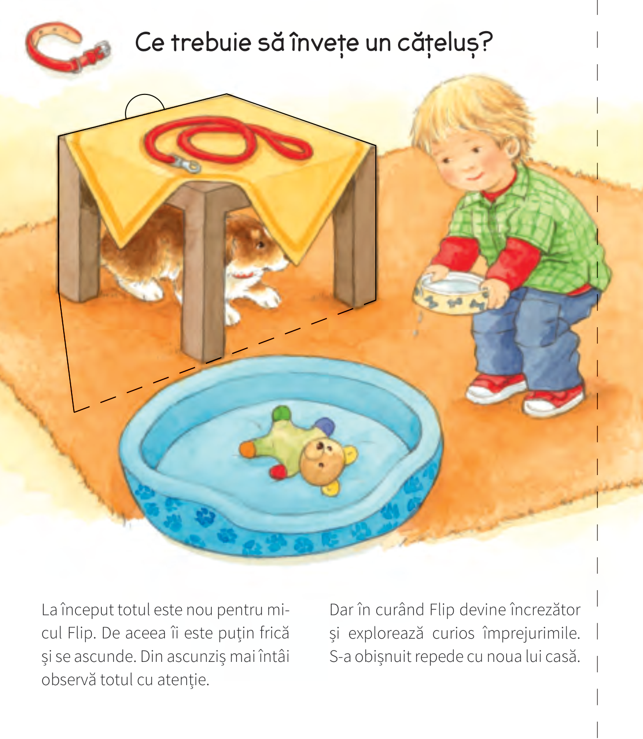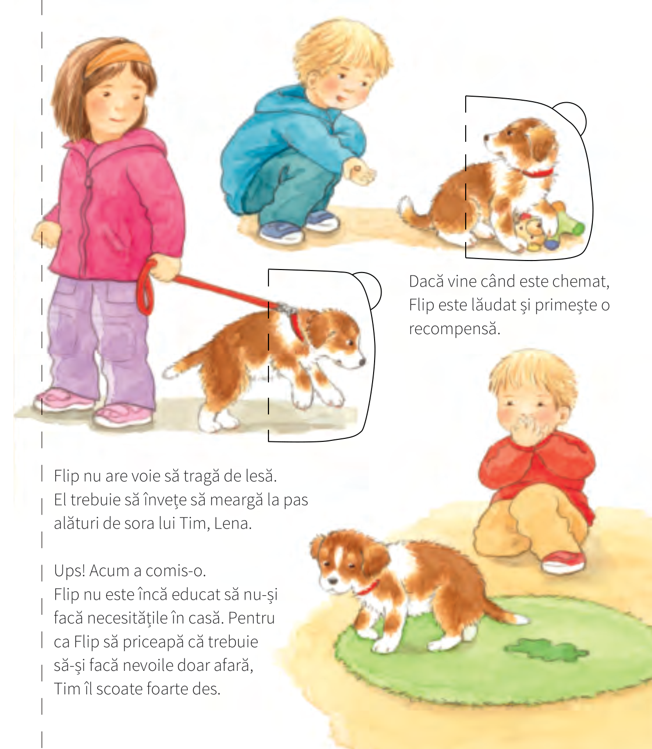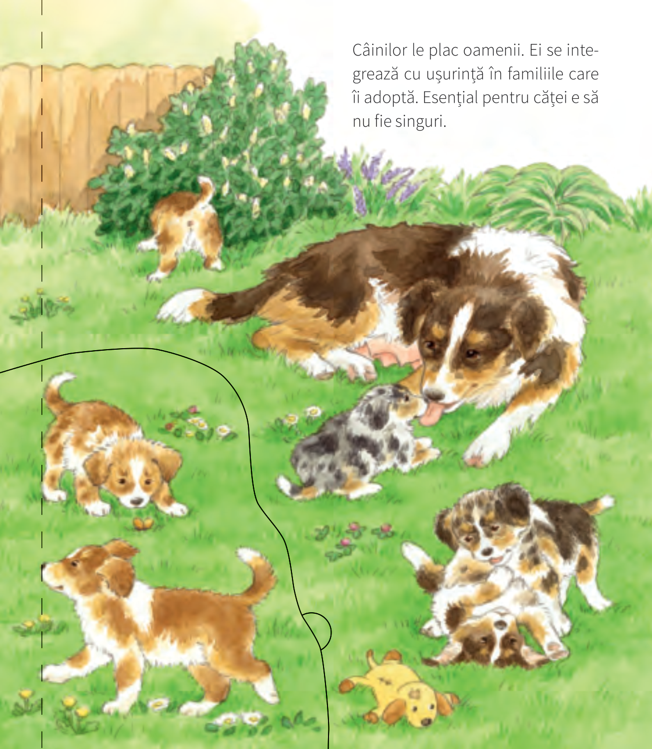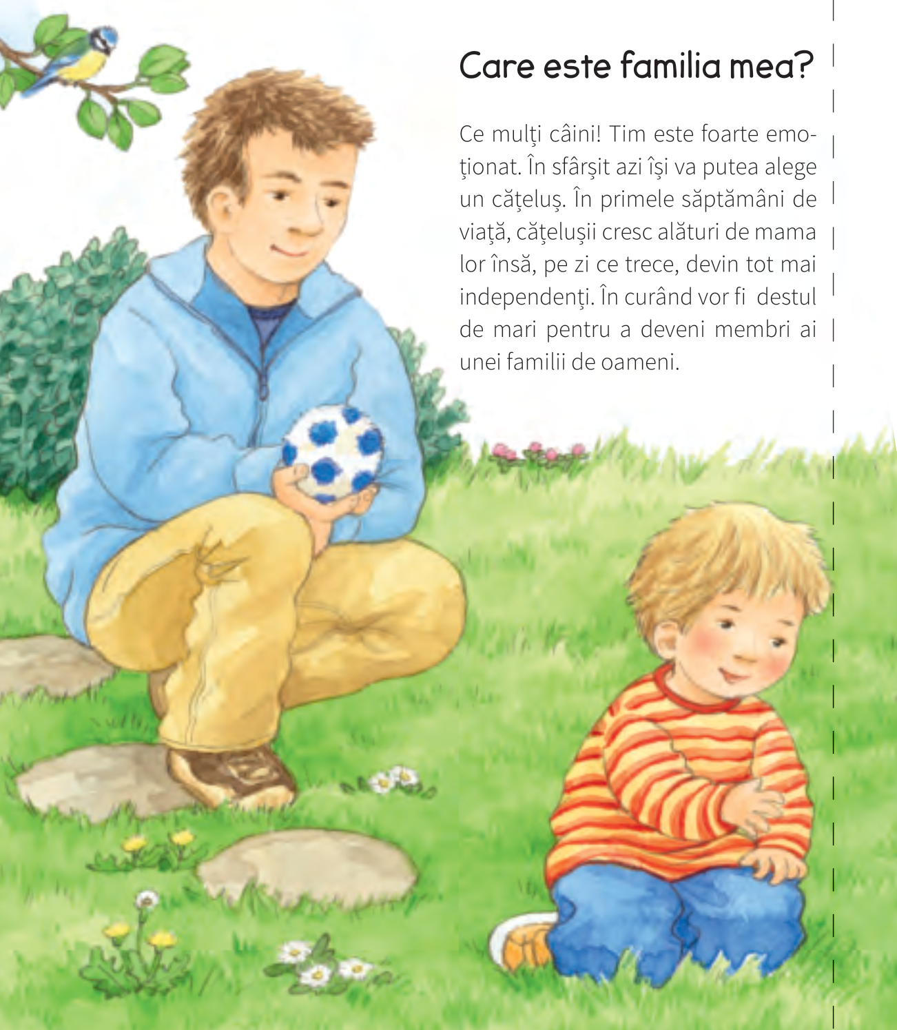Cartea Câinele meu își propune să familiarizeze copiii mici cu câteva rase de câini și totodată cu responsabilitățile pe care le impune achiziționarea unui cățeluș. Răsfoind paginile cartonate, frumos ilustrate ale cărții, copilașii fac cunoștință cu cele mai cunoscute rase de câini, ce le place acestora să facă, cum comunică cu stăpânul, ce trebuie învățat cățelușul.