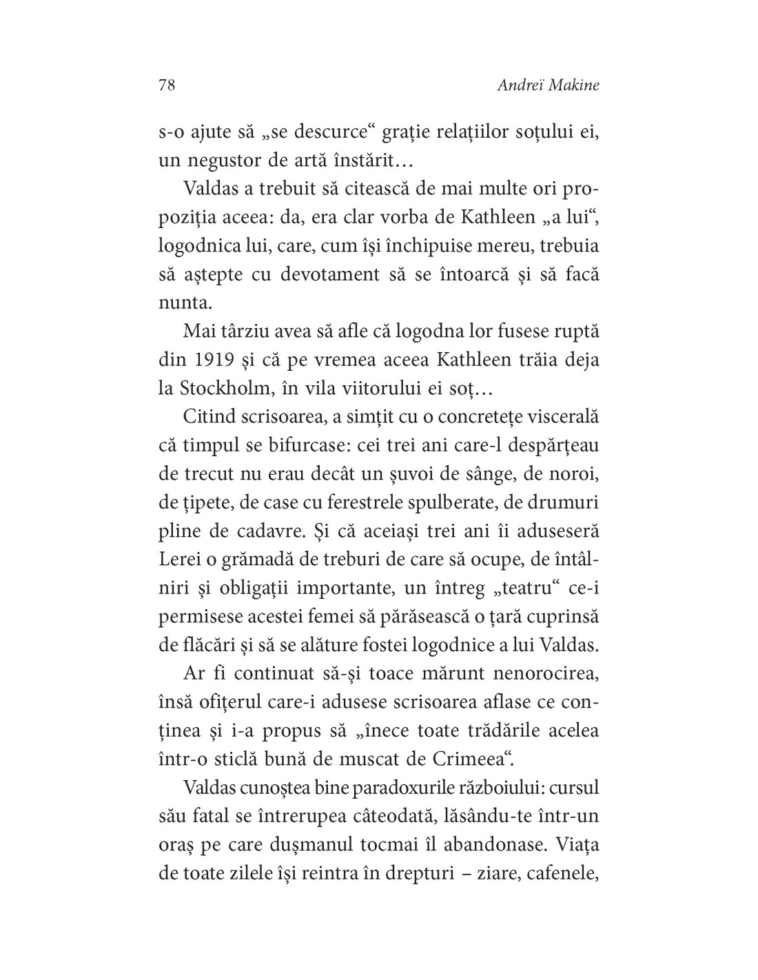 O capodoperă extrem de concisă, acest roman despre trădare, sacrificiu şi mântuire ne face să retrăim, la nivel uman, dramele Istoriei: revoluţii, conflicte planetare, diferendele de după încheierea războiului. Şi totuşi, o tramă secretă, dincolo de atrocele comedii umane, ne eliberează de influenţa acestora, conferind o dimensiune infinită efemerităţii unei iubiri rănite.