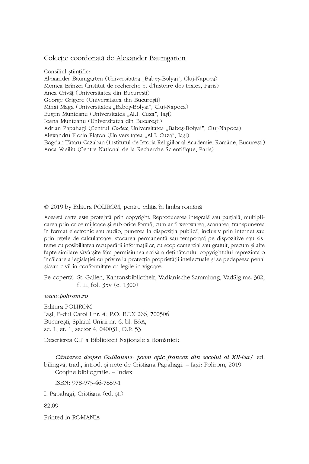 Traducere, introducere, note, indexuri şi bibliografie de Cristiana Papahagi