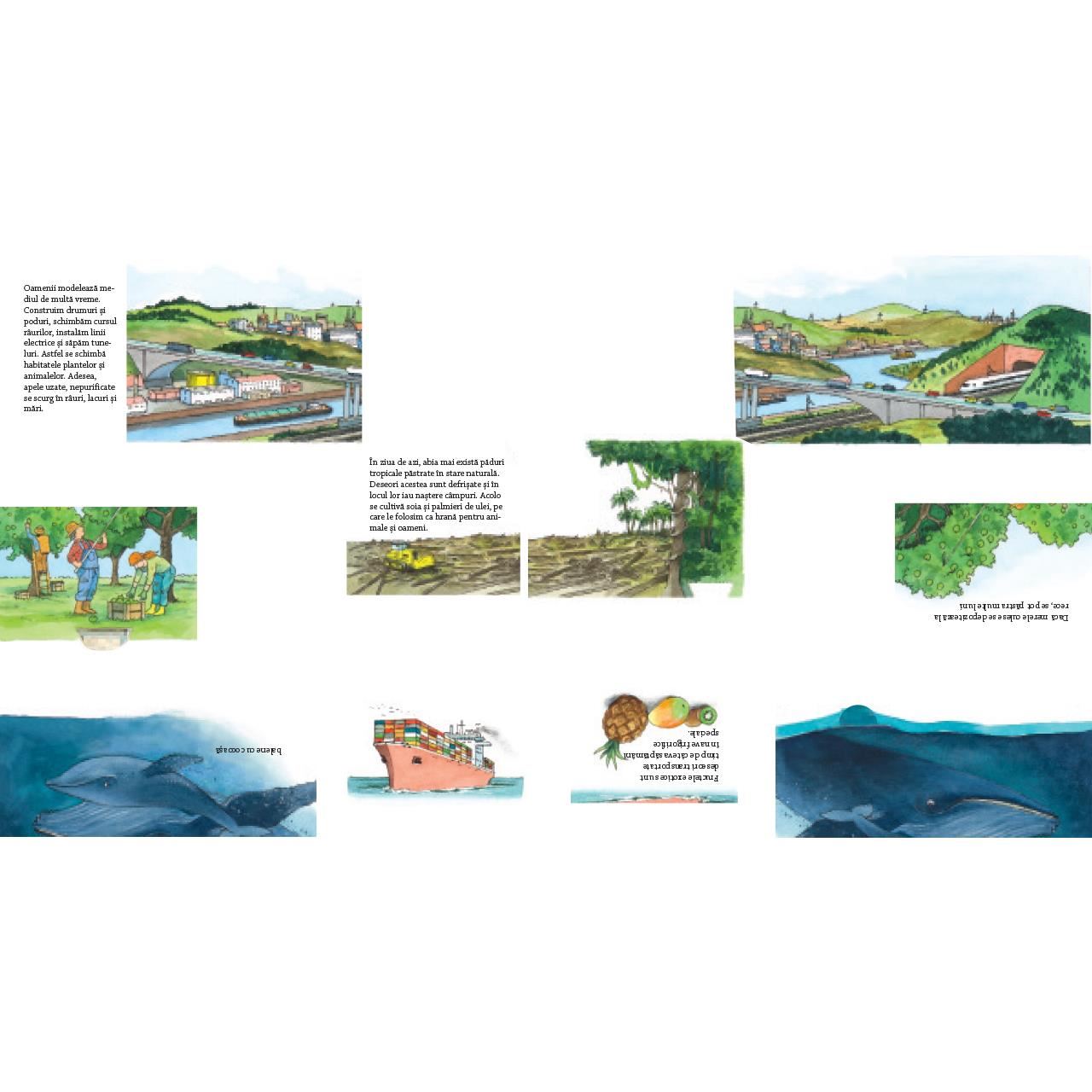 Răsfoind paginile cartonate, bogat ilustrate, cu multe ferestre explicative, ale cărții Să protejăm mediul, copiii află că natura trebuie protejată și ce putem face pentru acest lucru. Fiecare pagină se ocupă de un subiect anume. Micii cititori descoperă importanța pădurilor și a mărilor, cum se poate economisi apa, cum se generează curentul electric, care vehicule poluează atmosfera, de ce pericole sunt amenințate animalele și de ce trebuie să sortăm deșeurile pe care le producem.