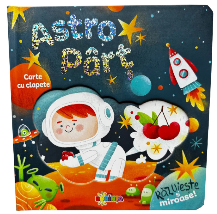 Pregătește-te pentru o aventură spațială plină de haz cu „Astro Pârț”! O carte interactivă absolut captivantă (și plină de surprize!), perfectă pentru micii exploratori pasionați de cosmos și de hohote de râs.