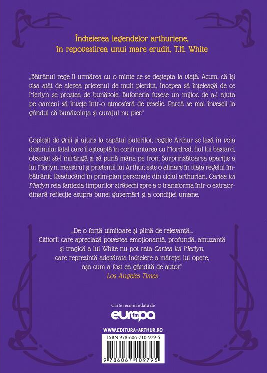 Publicată postum, Cartea lui Merlyn reprezintă încheierea legendelor arthuriene, așa cum au fost ele repovestite de un mare erudit, T.H. White