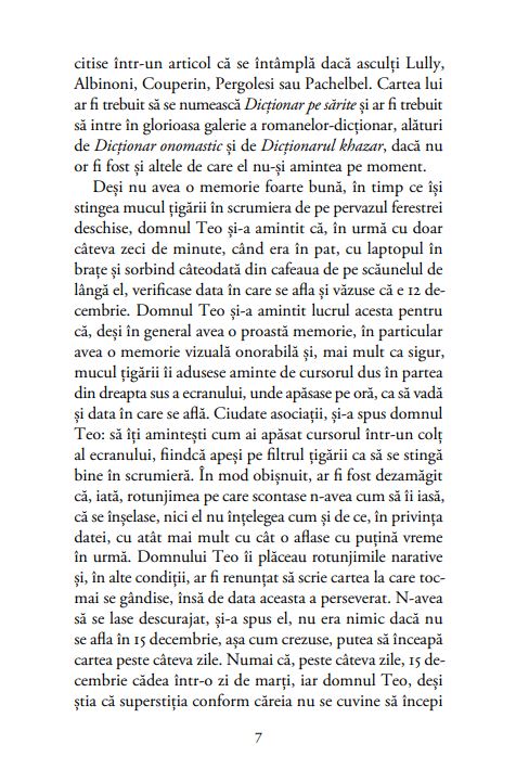 „O carte nu-i altceva decât o înșiruire de cuvinte, de paragrafe, de întâmplări din viețile altora, fie ei adevărați, în carne și oase, fie închipuiți, iar cuvintele și paragrafele și oamenii ăștia sau zebrele sau pinguinii nu fac altceva decât să pozeze, să înregistreze ceva ce există undeva în stimatul cititor și depinde de el dacă e acasă sau nu pentru o carte sau alta, depinde de el dacă-i deschide ușa și o lasă să-i înregistreze sau nu consumul de energie electrică, depinde de el dacă în timp ce citește i se zbârlește părul pe mâini dintr-o cauză sau din alta ori dacă își zice ia mai lasă-mă, frate, cu prostiile astea ori dacă își aduce aminte de mirosul pielii bunicii atunci când se apleca pe deasupra lui să mai îndese bucățica de cașcaval în marginea mămăligii ori dacă citind își proiectează un viitor fericit cu femeia sau cu bărbatul cu care în urmă cu trei zile a împărțit o conservă de ton în ulei și o bere.“ – T.O. BOBE