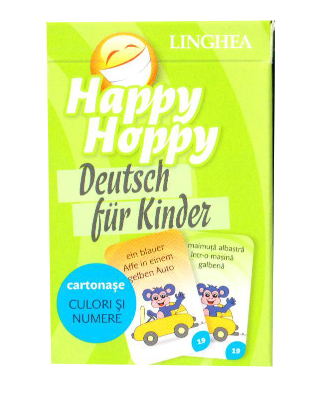 Oferiţi-le copiilor un prim contact plăcut cu limba engleză: cartonașele Happy Hoppy folosesc metode simple de învăţare practică a limbii, îmbogăţindu-le vocabularul englez în ritm natural, distractiv şi eficient. Pot fi folosite acasă, în călătorii, la grădiniţă şi la şcoală. Pachetul conține 52 de cartonașe în engleză și română, cu ilustrații colorate și expresii alese cu grijă.