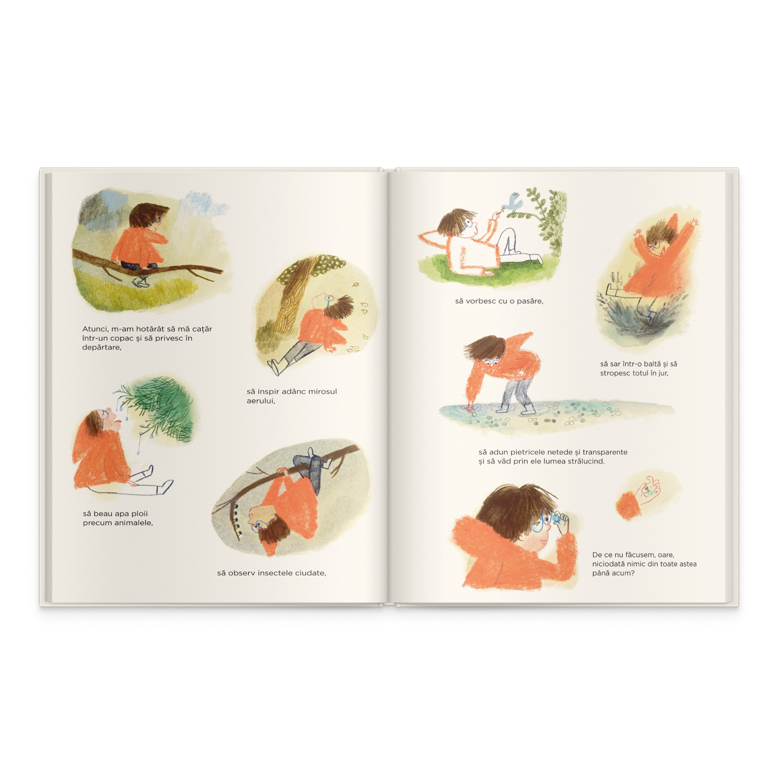 Cartea “Ce faci când nu faci nimic” se adresează în primul rând copiilor fiind o invitație la explorarea liberă a naturii. Dar ea este, în același timp, și o carte a părinților – un îndemn spre a le permite copiilor un timp de joacă nesupravegheată și firească.