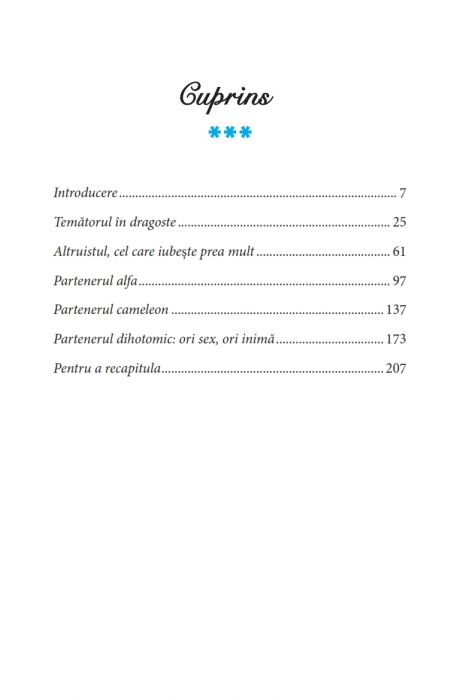 Partenerul tău are o problemă legată de ideea de iubire și îți reproșează tot timpul că îi ceri prea mult? Crezi că iu¬birea și dorința nu pot coexista într-o relație de dragoste? Ești genul care nu poate lăsa garda jos în viața de cuplu, fiind obsedat să ai mereu ultimul cuvânt pentru a te simți iubit? Temător, altruist, alfa, cameleon, dihotomic... compor¬tamentele tipice ale partenerilor într-o relație de dragoste prezentate de autoare în cartea de față sunt multiple, dar oare știi că ele sunt rezultatul unor traume ascunse din co¬pilărie, care ți-au formatat „hard diskul” amoros?