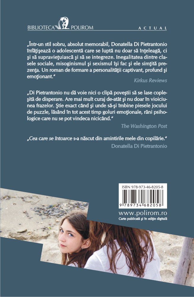 Al treilea roman al scriitoarei italiene Donatella Di Pietrantonio, Cea care se întoarce a avut un succes dincolo de orice aşteptări, fiind vîndut în scurt timp de la apariţie în peste 20 de ţări de pe toate continentele. Este povestea unei adolescente traumatizate de un dublu abandon şi de căutarea dureroasă a adevărului la o vîrstă ce ar trebui să fie a visurilor şi a speranţei. O fată se trezeşte, peste noapte şi fără explicaţii, catapultată într-o familie nouă, într-o lume nouă, aparent la antipozii celei anterioare. Ambele au însă în comun aceeaşi incapacitate de accesare a propriilor emoţii. Or, tocmai emoţia şi sentimentele exprimate vor aduce salvarea. Autoarea foloseşte un limbaj simplu, esenţial, tăios uneori, la fel ca ţinutul natal de pe fundal, regiunea Abruzzo, un pămînt neprietenos, dar pe care, pe neaşteptate, marea îl iluminează. Însuşi titlul cărţii, L`Arminuta, „cea care se întoarce”, aparţine dialectului local.