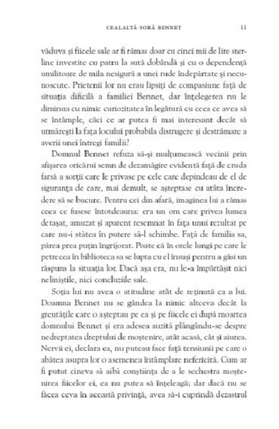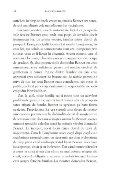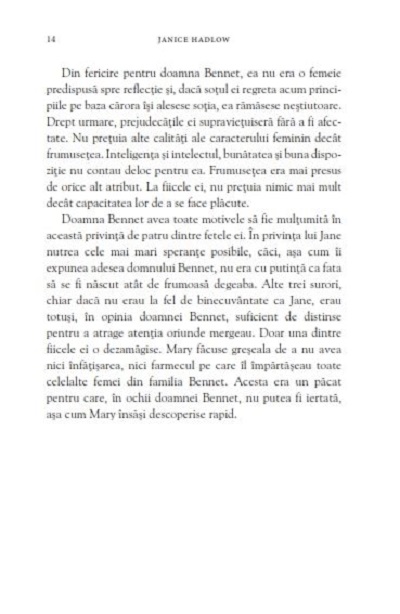 Absolut magic! Este o minune că Cealaltă soră Bennet este primul roman al lui Janice Hadlow. Scrisul ei este elegant și ironic, iar povestea este captivantă... Veți fi surprinși că nu o citiți, de fapt, pe Jane Austen. - BookPage