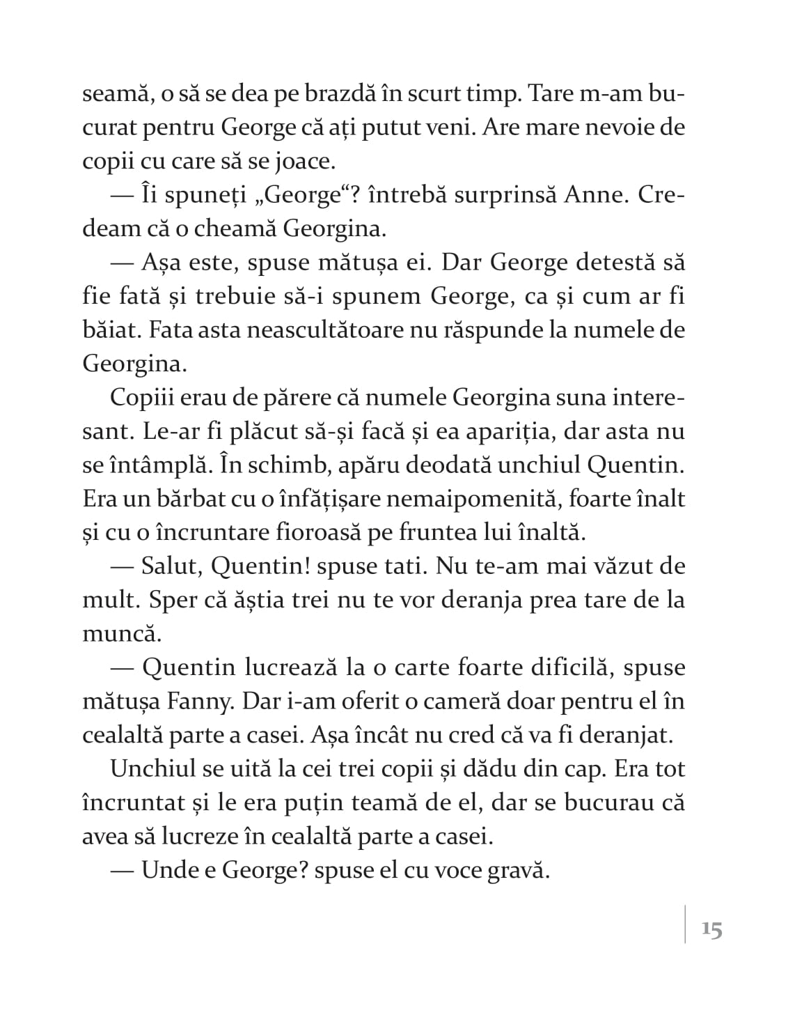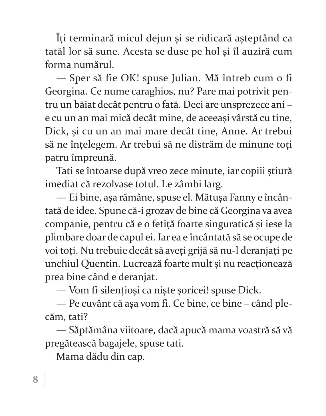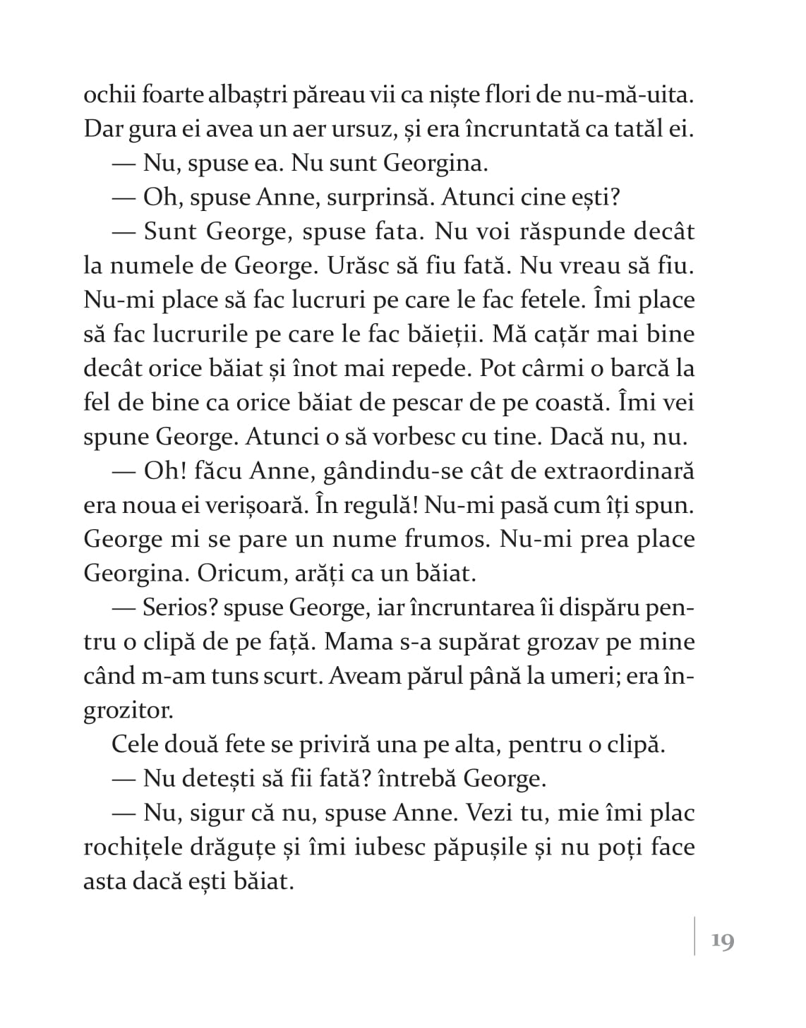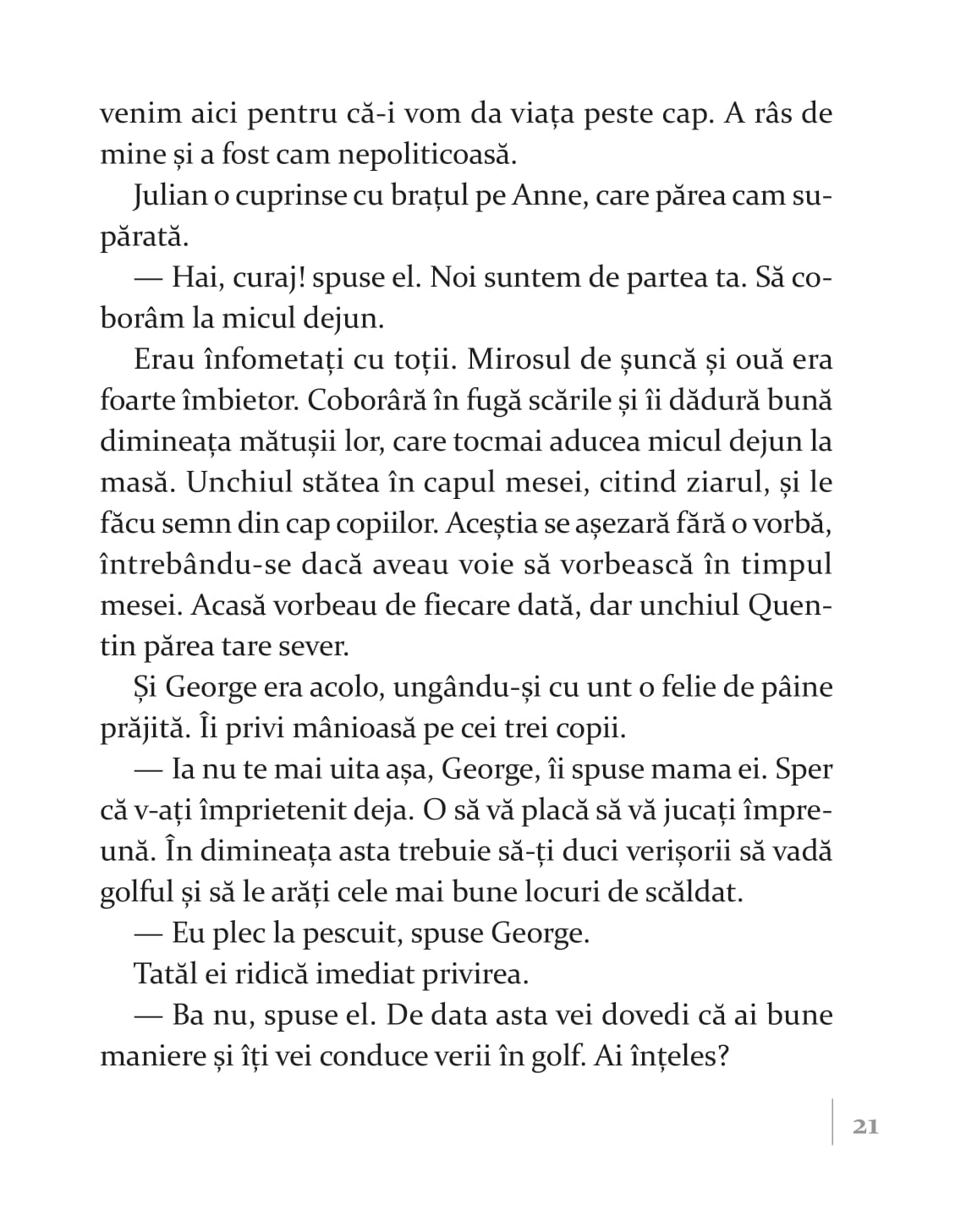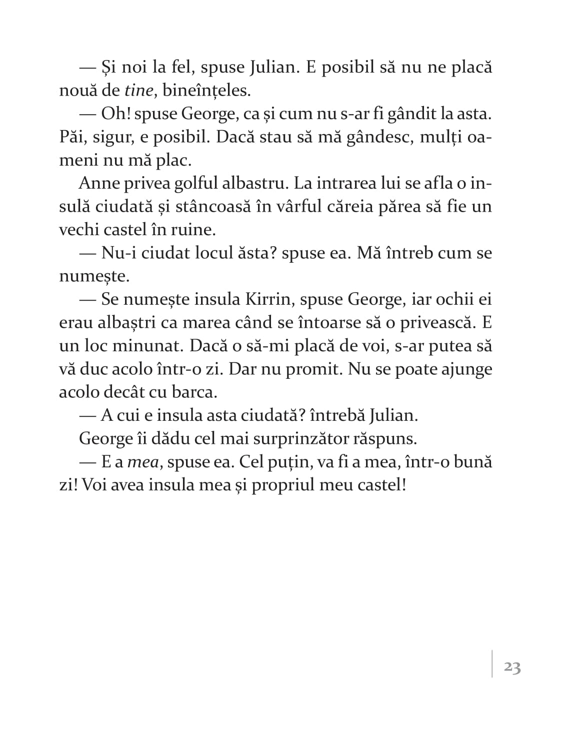 „Înainte să vedem care-i treaba cu insula comorii, trebuie să vă zic că Enid Blyton este una dintre cele mai prolifice și apreciate scriitoare de literatură pentru copii. Născută în Marea Britanie, a scris mai mult de 600 de cărți, care s-au vândut în peste 500 de milioane de exemplare peste tot în lume. Exact. Ați citit bine. 600 de cărți, 500 de milioane de exemplare. Asta chiar spune ceva despre priceperea ei. Unde mai pui că și-a plasat numeroase dintre povești chiar în locurile în care a trăit, astfel că naturalețea cu care construiește lumi și personaje este asigurată”.
