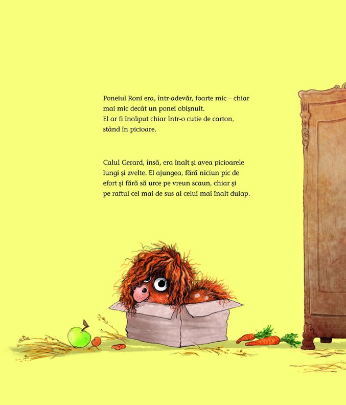 Viața poneiului Roni alături de calul Gerard nu era deloc ușoară. Gerard era înalt, grațios, avea blana mătăsoasă și până și mâncarea lui era cu mult mai bună decât a lui Roni.
