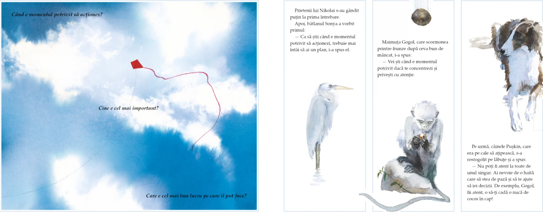 A fost odată ca niciodată un băiat pe nume Nikolai, care uneori se îndoia de alegerile făcute. — Vreau să fiu un om bun, le-a spus el într-o zi prietenilor săi. Dar nu știu întodeauna cum să fac asta. Prietenii lui Nikolai au înțeles și au vrut să-l ajute. — Dacă aș afla răspunsurile la cele trei întrebări care mă frământă, continuă Nikolai, atunci aș ști mereu ce să fac.